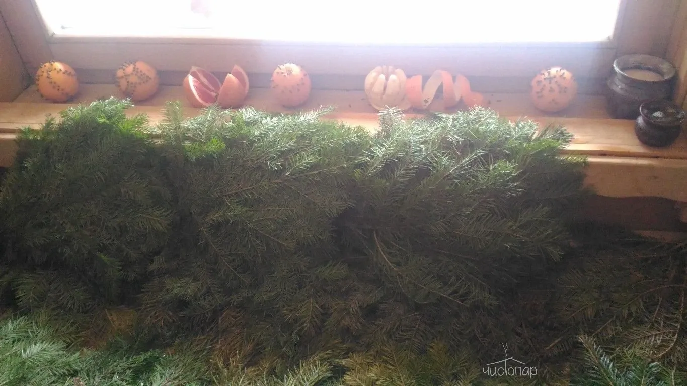 3) Активное парение дубовыми вениками на сенном матрасе с проработкой суставов и тепловыми акцентами на спине.