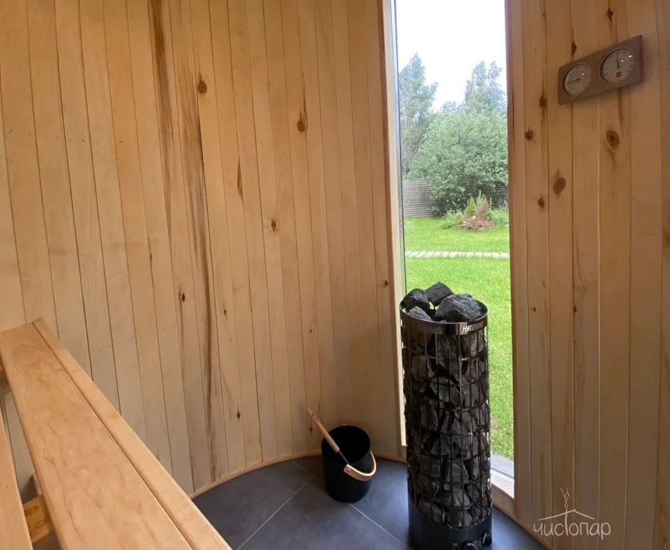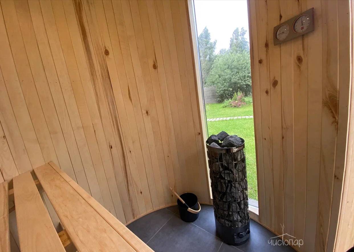 Глэмпинг предлагает своим гостям традиционную русскую круглую баню для полного расслабления.