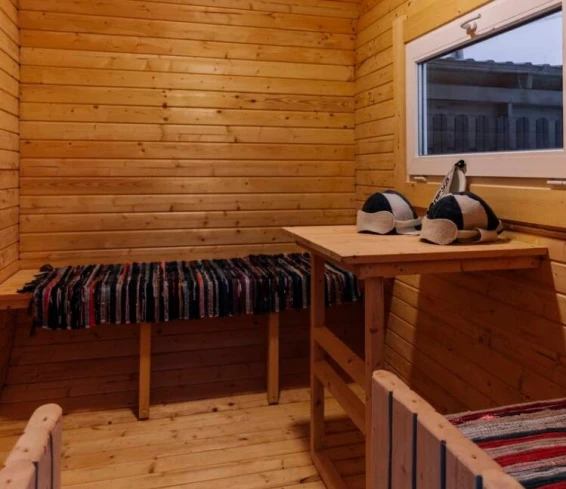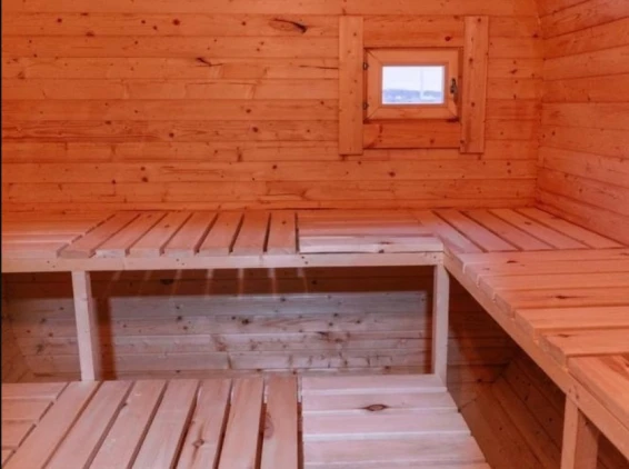 У каждого домика есть на террасе банный чан под открытым небом. Купание в купели помогает забыть о стрессах, снять напряжение и расслабиться душой и телом. На территории дома также есть баня на дровах.