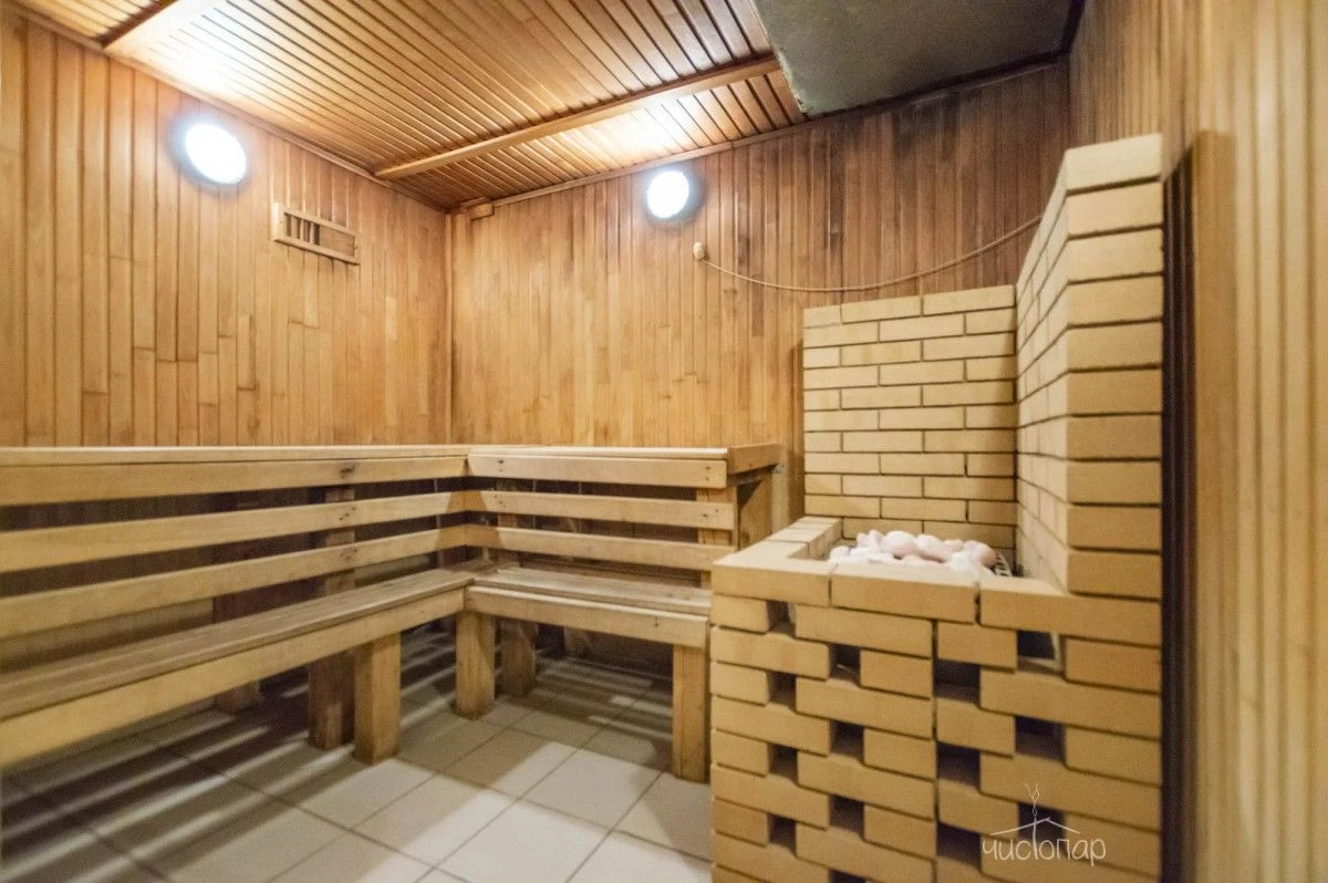 Если же вы любитель сухого пара, мы можем предоставить вам сауну, в которой благодаря горячему и сухому воздуху происходит потоотделение, выводятся из организма шлаки и токсины. В результате организм очищается и расслабляется, а вы чувствуете себя на несколько лет моложе.