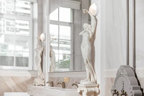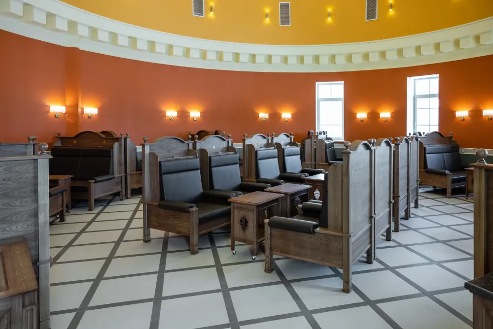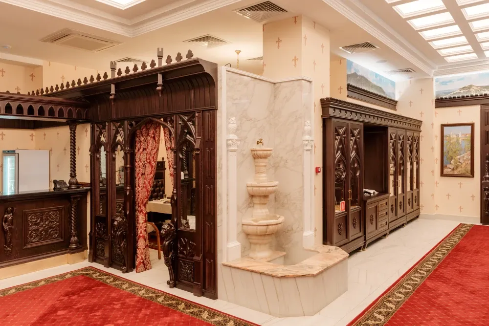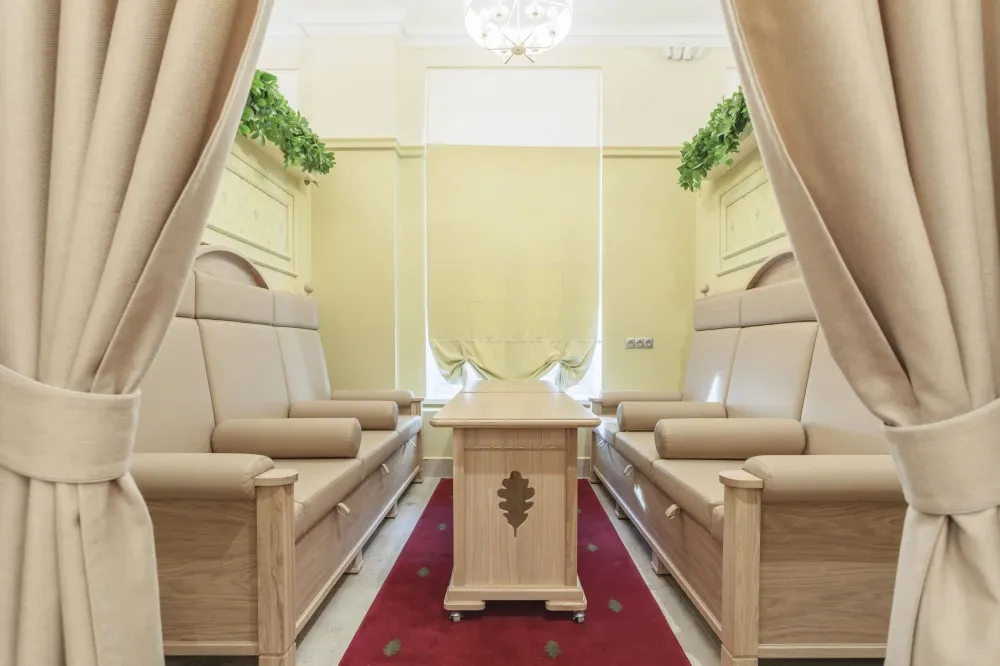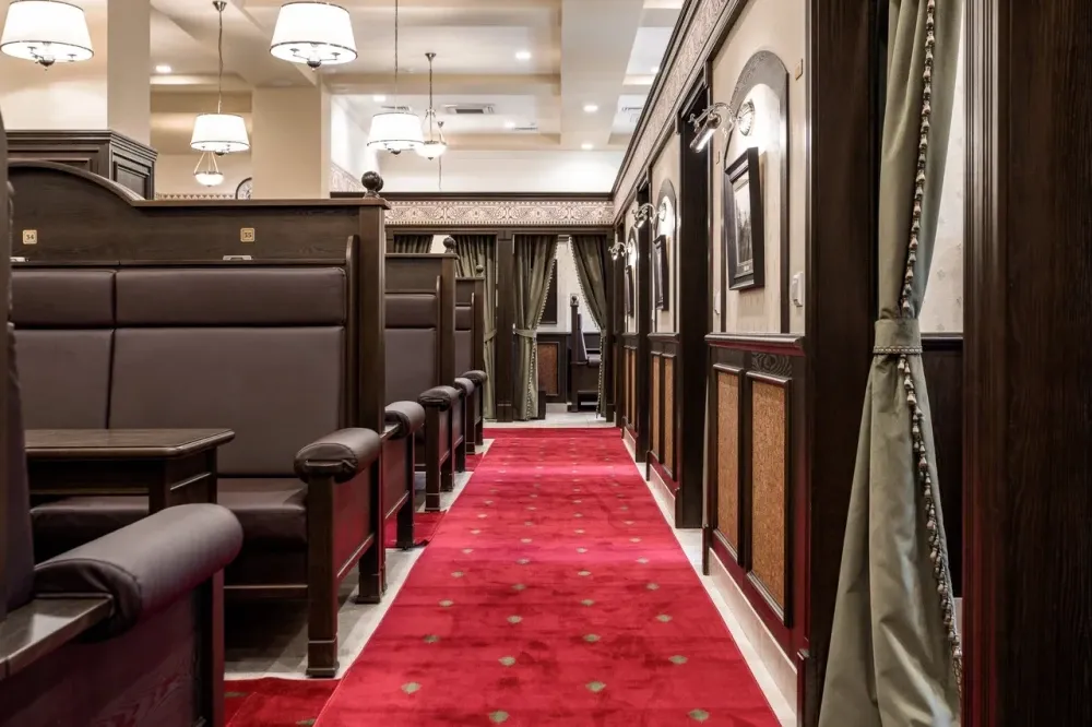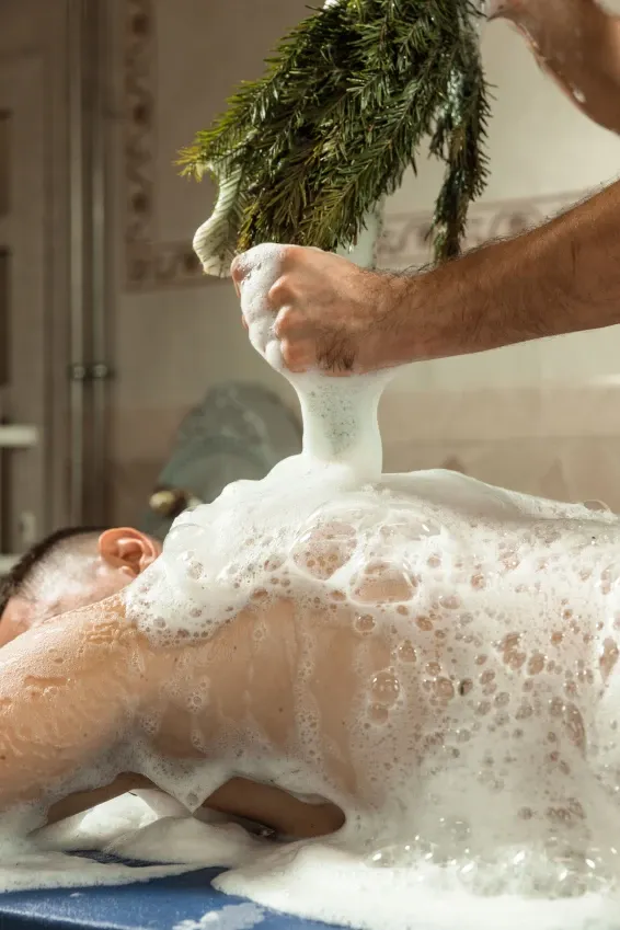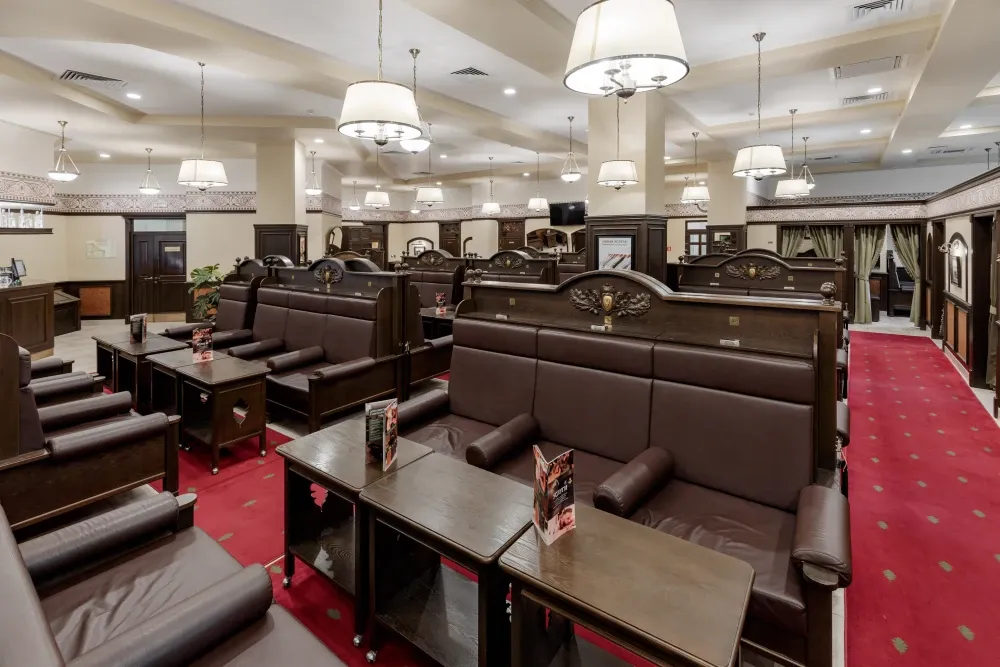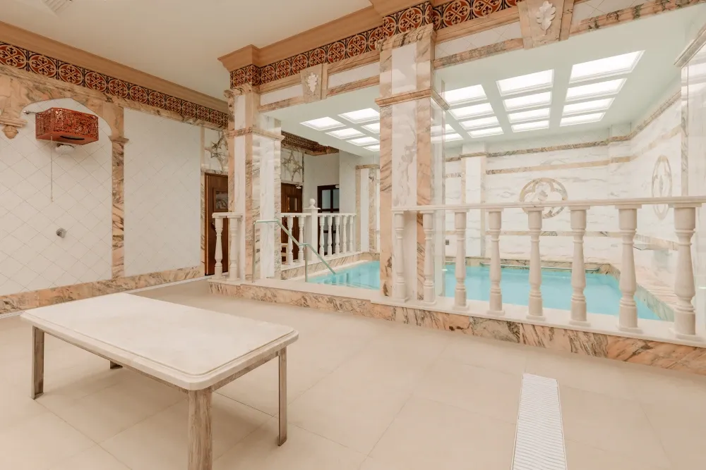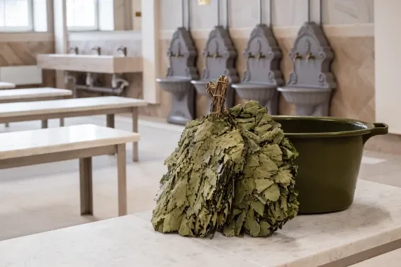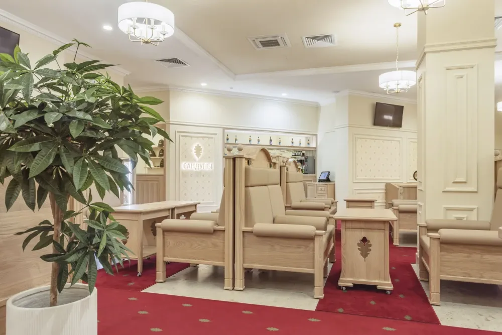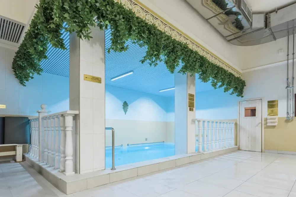 Сердце бани — знаменитый Сандуновский пар: чугунная печь, нагретая до 700-750°C, создает мгновенный, обволакивающий и глубоко согревающий пар. Демидовский разряд — особая гордость «Сандунов» на Урале, названный в честь прославленных промышленников Демидовых. Его интерьер отражает XVIII век: уникальные арки, орнаменты, деревянные узоры и украшения из саянского мрамора.