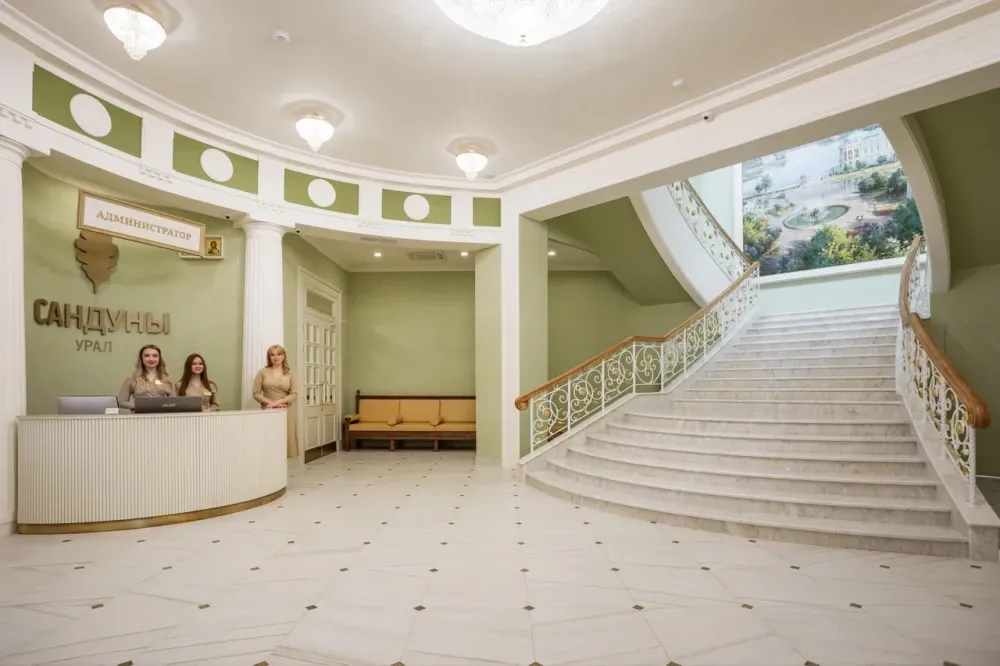 Кухня «Сандунов» — это содружество русской, кавказской и арабской кухонь под руководством шеф-повара Исама Сваида. Русская баня — праздник души и тела. Здесь царят особые традиции: от лёгкого пара с травами до контрастных обливаний. «Сандуны Урал» — место для неторопливых бесед и душевного отдыха, дарящее бодрость и здоровье.