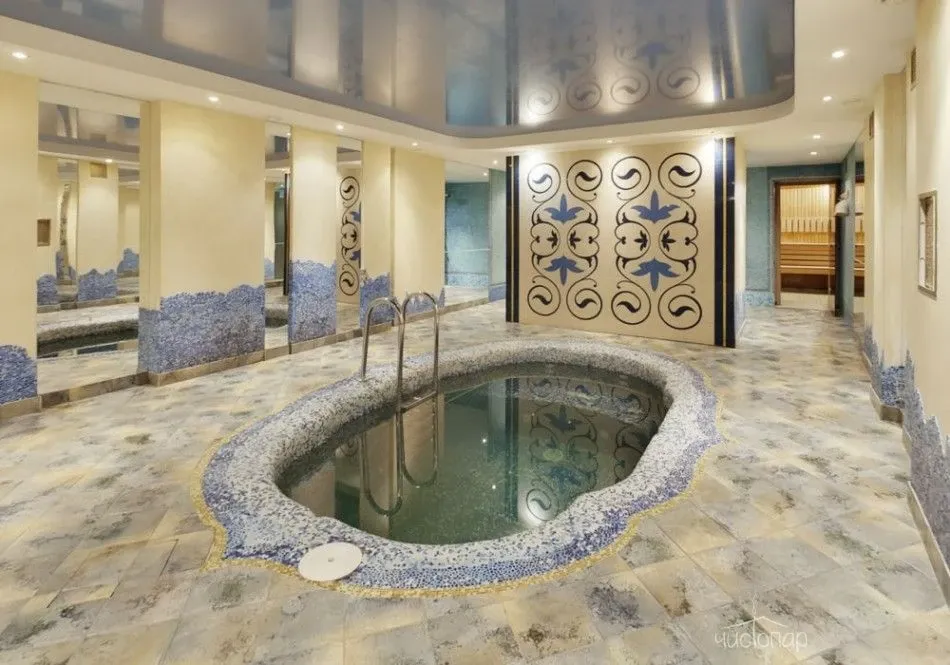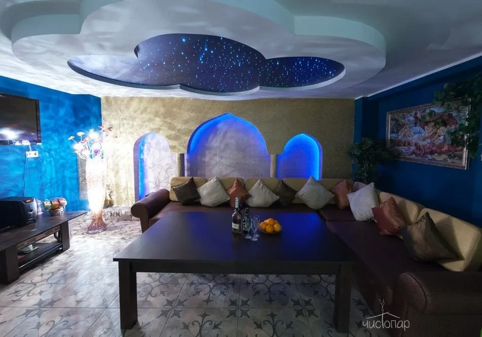 Сауна "Турецкий зал"В турецком зале есть парилка, работающая как в режиме сухой финской сауны, так и в режиме русской парной, уютная и большая зона отдыха, где Вас угостят свежим разливным пивом, а любителей травяным чаем с медом и плюшками, так же в Вашем распоряжении две комнаты отдыха, ароматерапия и детокс-меню, спа-процедуры на натуральной косметике. безупречно чистая вода и домашний уют — приоритет нашего заведения.