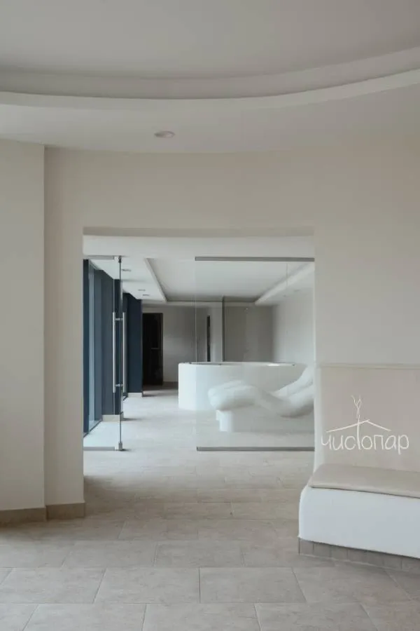Комплекс состоит из 2 этажей, перемещения по которым является своеобразным маршрутом от шумной улицы, уставшего тела и забот к чистоте, радости, выдоху и отдыху и обратно, но уже с новыми силами.