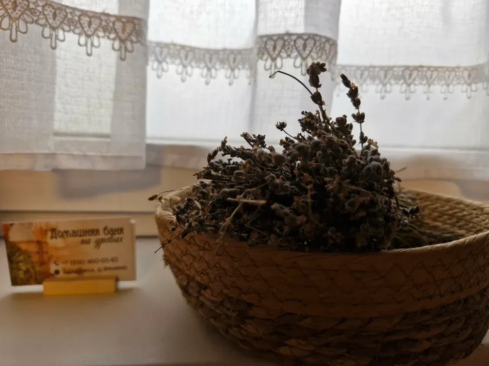 В ассортименте за отдельную плату веники: Береза/Дуб, Полотенца, простыни, халаты. Травы для аромата парной - полынь, эвкалипт, мята, донник и др...