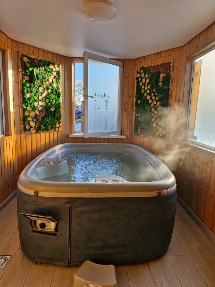 Спа-комната с подогреваемым джакузи.