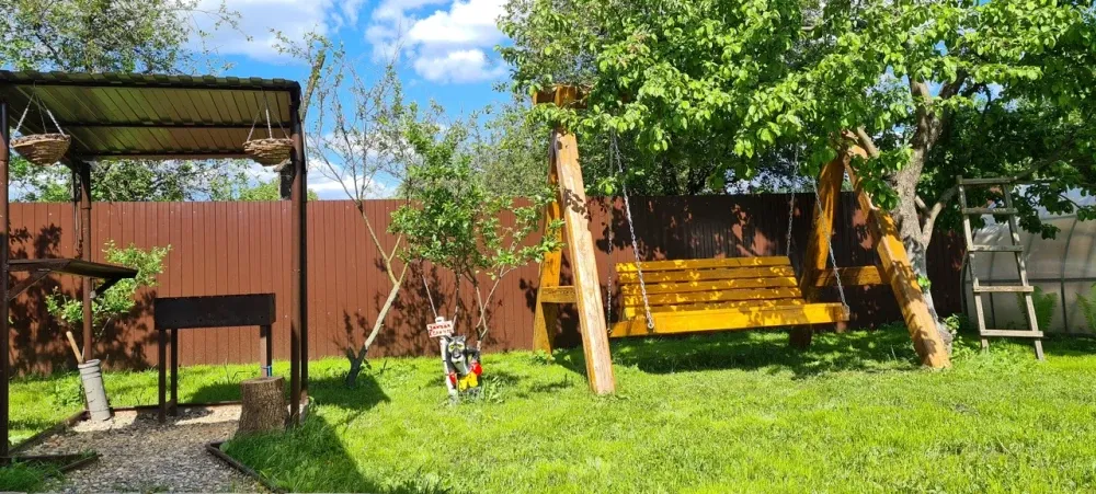 Кухня, микроволновая печь, холодильник, эл.чайник, заварник, обеденный стол. Мангальная зона, которая входит в стоимость.