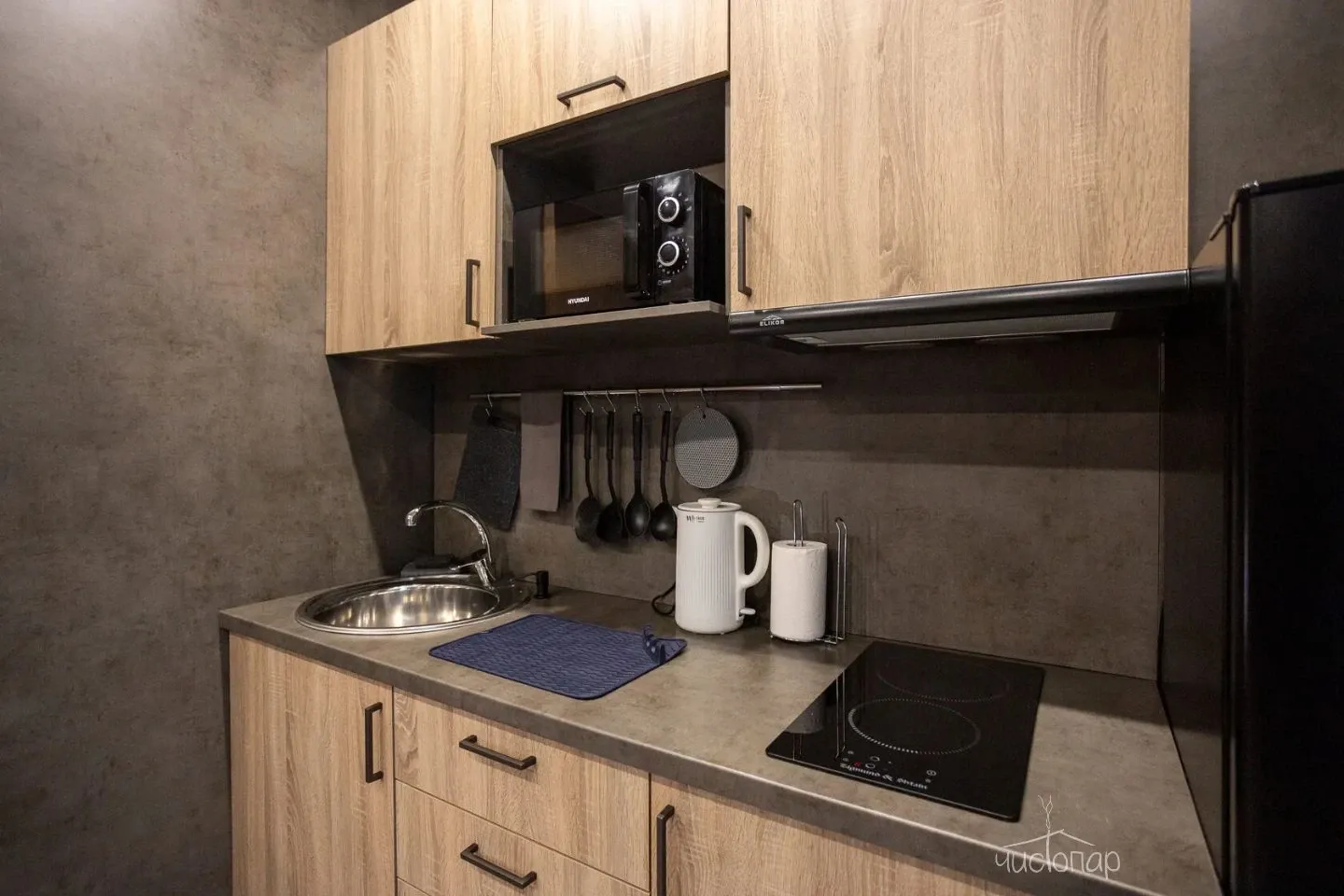 Уютные апартаменты "Вода" и "Воздух" для отдыха вдвоём или небольшим составом (2+2) - прекрасный вариант для романтических поездок, тихая гавань для пары или возможность отдохнуть и пообщаться небольшой компании друзей, затопить купель фурако*.