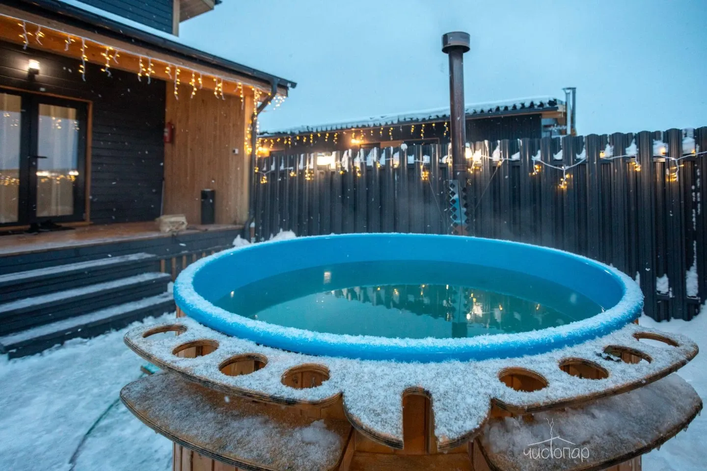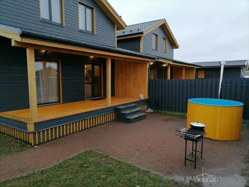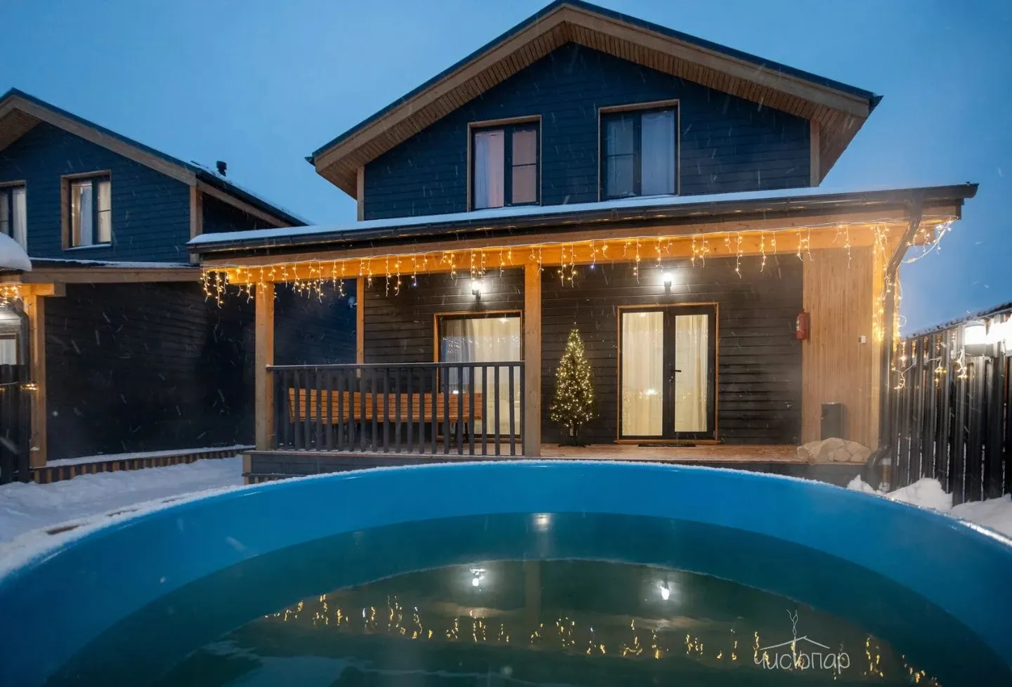 У террасы коттеджа, во дворе – находится купель фурако. Водный релакс под открытым небом в любое время года! (Услуга по приготовлению купели не входит в стоимость аренды коттеджа и оплачивается отдельно)