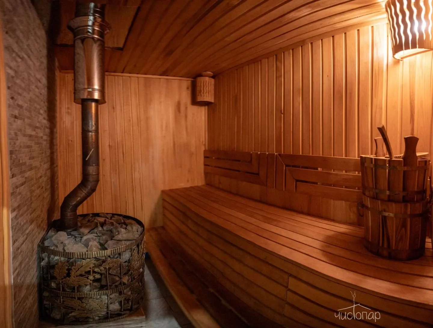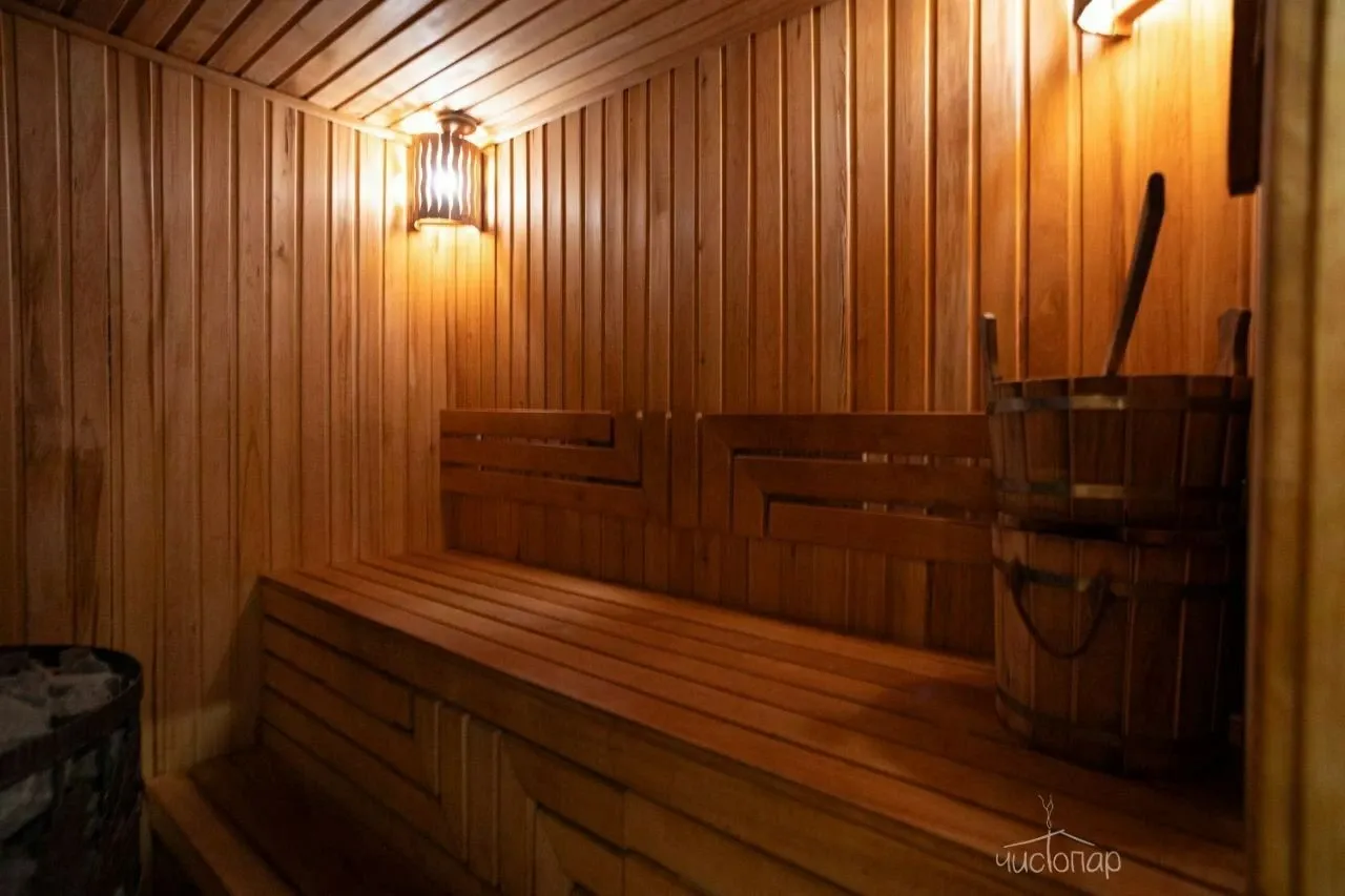 Русская баня на дровах находится в самом коттедже на первом этаже! (Услуга по растопке бани не входит в стоимость аренды коттеджа и оплачивается отдельно)