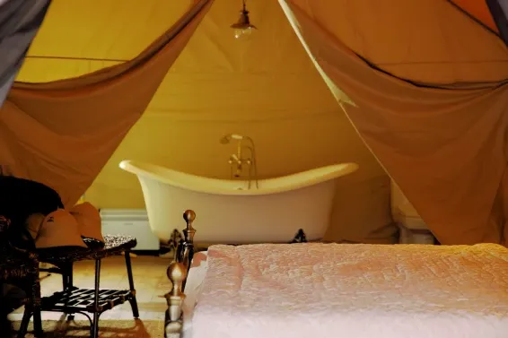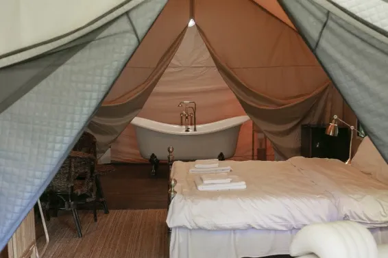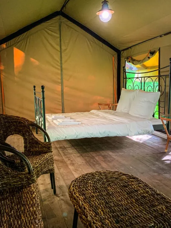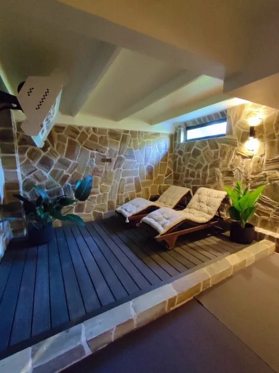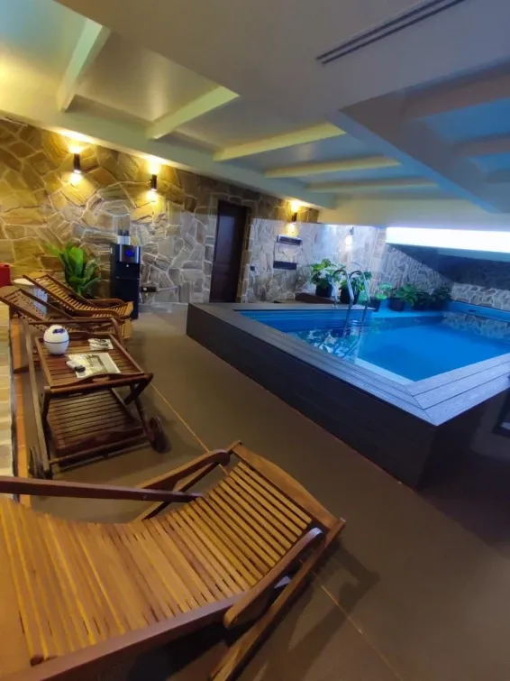 На территории глэмпинга есть СПА-комплекс, который включает в себя финскую сауну, подогреваемый бассейн с подсветкой, соляную пещеру, искусственное солнце. У бассейна оборудована небольшая зона отдыха c удобными шезлонгами.