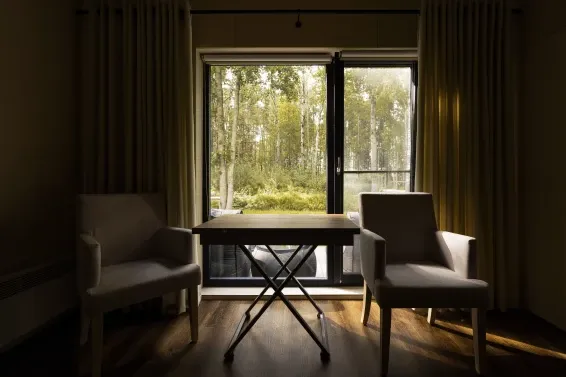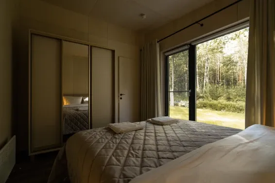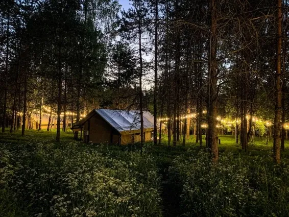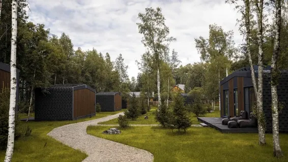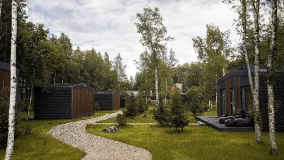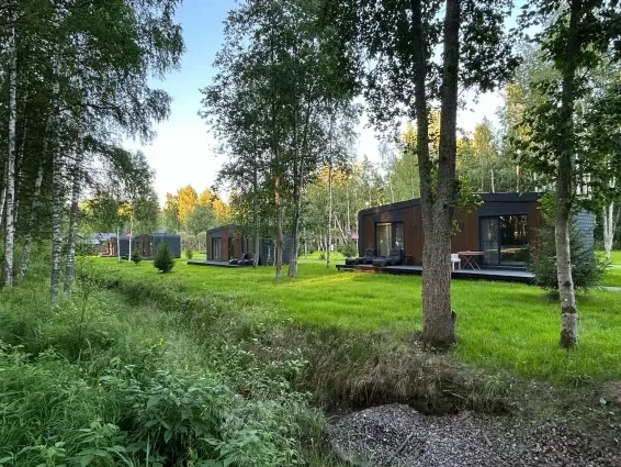 Проживание предусмотрено в модульных уютных домах у озера или в атмосферном глэмпинге в лесу. Комфорт, природа и новые впечатления — всё для идеального отдыха.