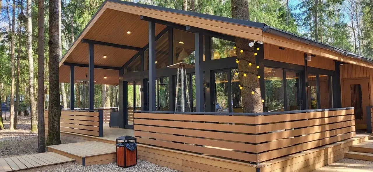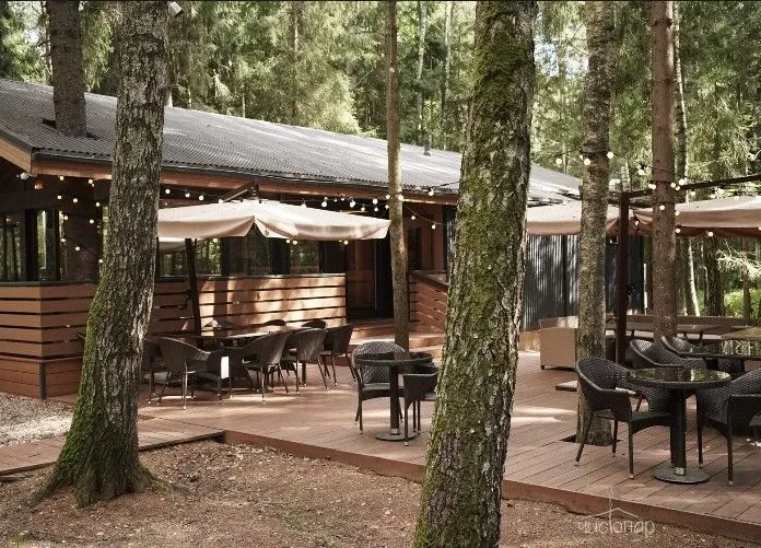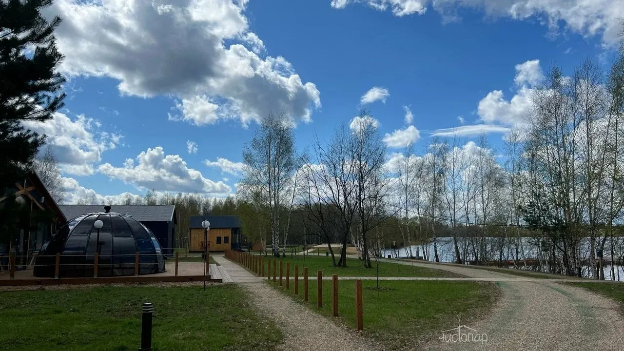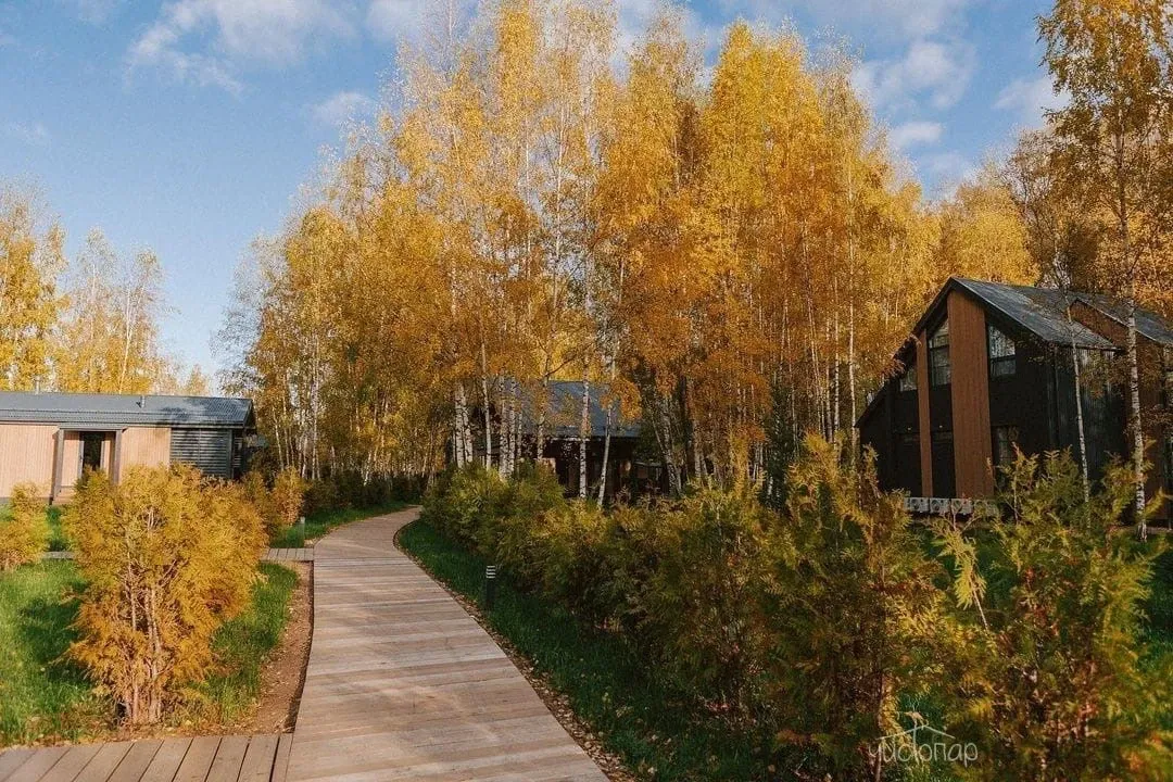 В лесной зоне на территории 6,5 га размещены 12 коттеджей с верандой, пространства для отдыха, две русские бани с кедровыми купелями, рыболовный клуб и ресторан.