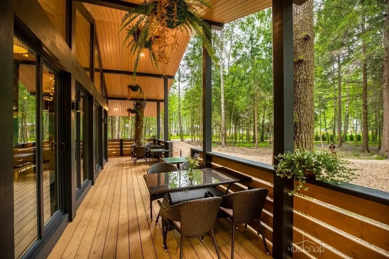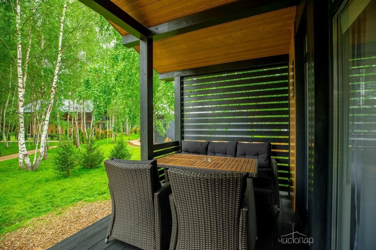 Провести время на воздухе, почитать любимую книгу или выпить чашечку чая можно на террасе, сидя в уютных креслах. Любители готовить на природе могут воспользоваться специально оборудованной зоной барбекю. Жарить шашлыки можно даже в проливной дождь, мангал защищен навесом.