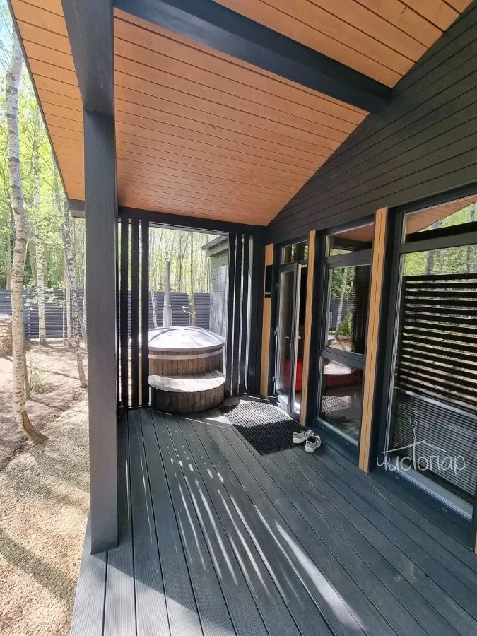 Коттедж 130 кв.м. до 8-ми человекОдним из достоинств этого дома является рациональное использование площади и панорамное остекление, что делает этот домик не только уютным и комфортным, но полным света и тепла.