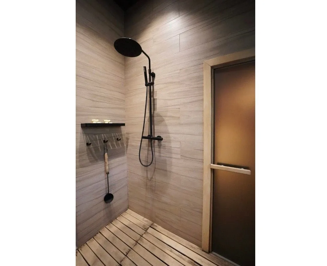 Ванная комната оснащена всей необходимой сантехникой, вы можете смыть с себя дневную усталость. Отель позаботился о том, чтобы у вас были все необходимые средства гигиены, премиальная косметика, пушистые полотенца и мягкие халаты.