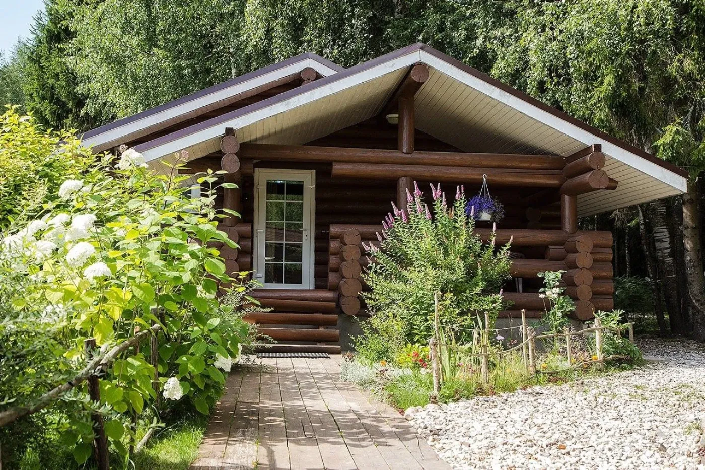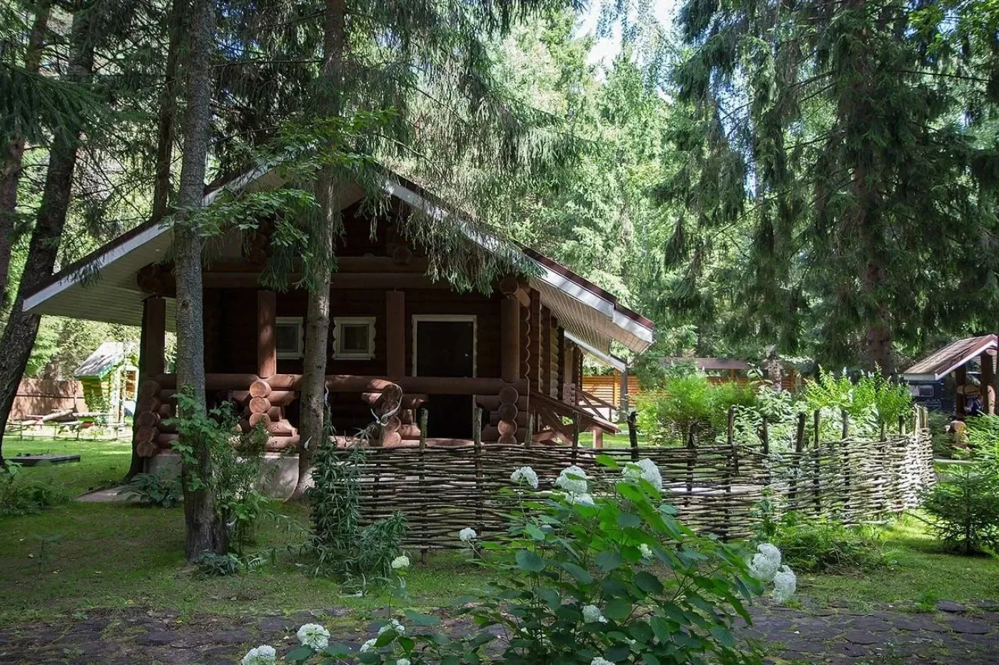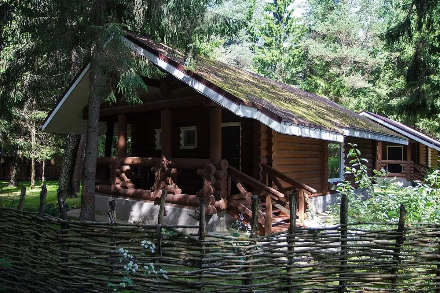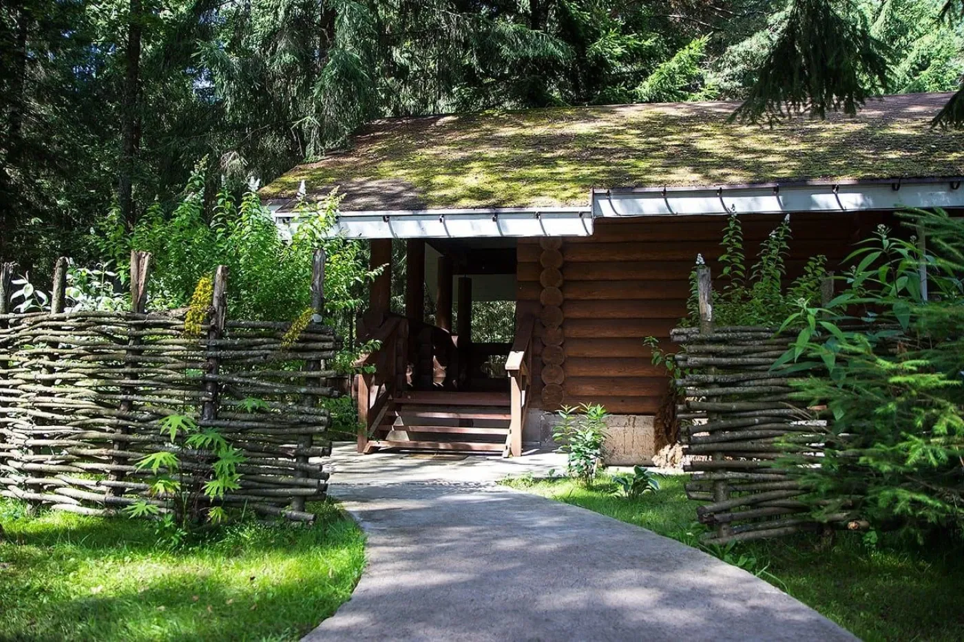 Клуб Green Forest – это комплекс рубленных домов-шале в Тверской области. База отдыха находится на окраине деревушки 19 века, до которой можно доплыть на пароме.