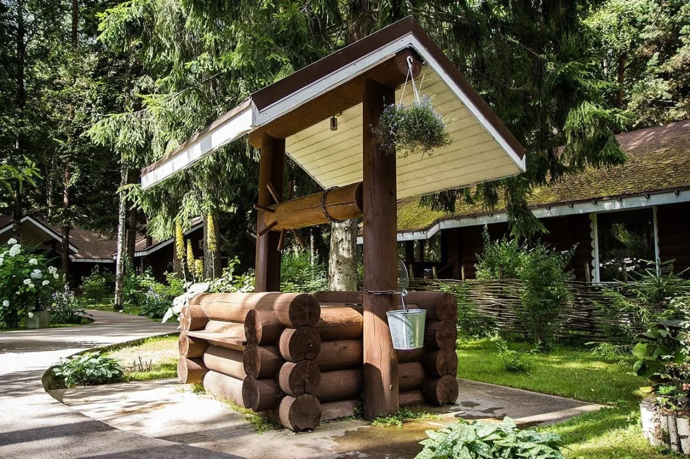 На территории есть как целые коттеджи для аренды, так и дома с несколькими номерами. Здесь царит атмосфера старой русской деревушки, вокруг базы отдыха живописный лес и Волга.