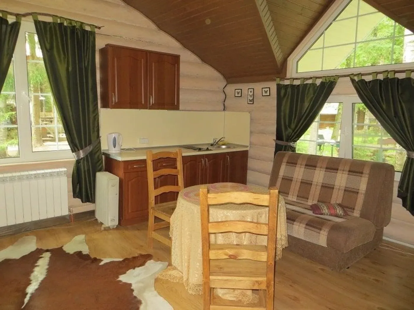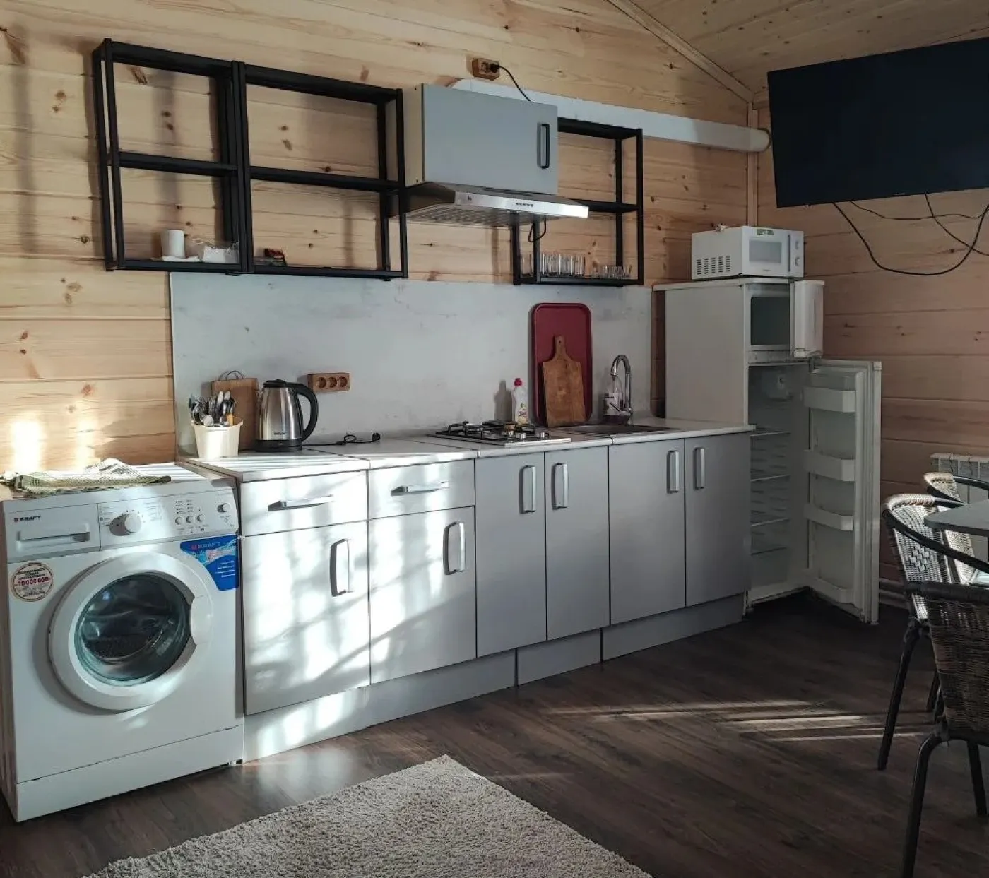 Дом-студия для двоих. Комфортный дом из деревянного сруба представляет собой студию для двоих человек: два взрослых (+ребенок/взрослый*), оборудованную всем необходимым.