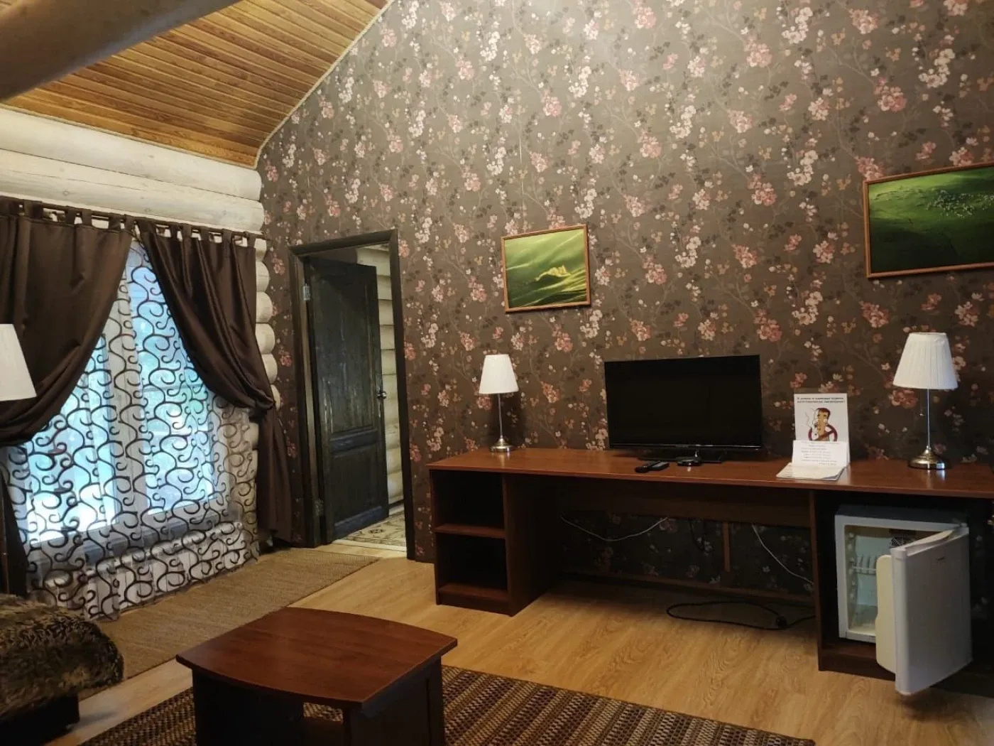 Комфортный дом из деревянного сруба представляет собой студию для двоих человек и веранду, оборудованную всём необходимым. Светлый, просторный дом, интерьер в спокойных тонах, все самое необходимое для комфортной жизни ждут вас при размещении в избе «ЛЕСНАЯ» от Green Forest.