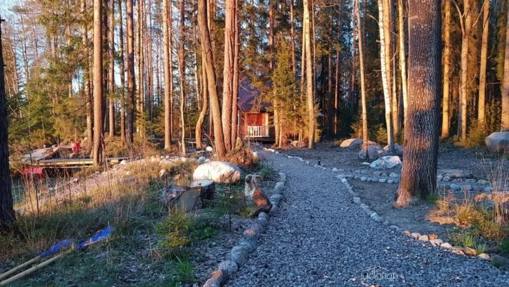 На территории имеется банный комплекс с панорамным видом на озеро, спортивная, детская, волейбольная, бадминтонная площадки, крытый настольный теннис и множество гамаков и качелей.