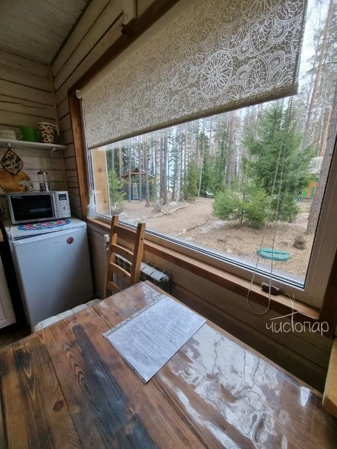 В "прянике" наше традиционное панорамное окно практически во всю стену, с которого открывается отличный вид на озеро Глубокое.