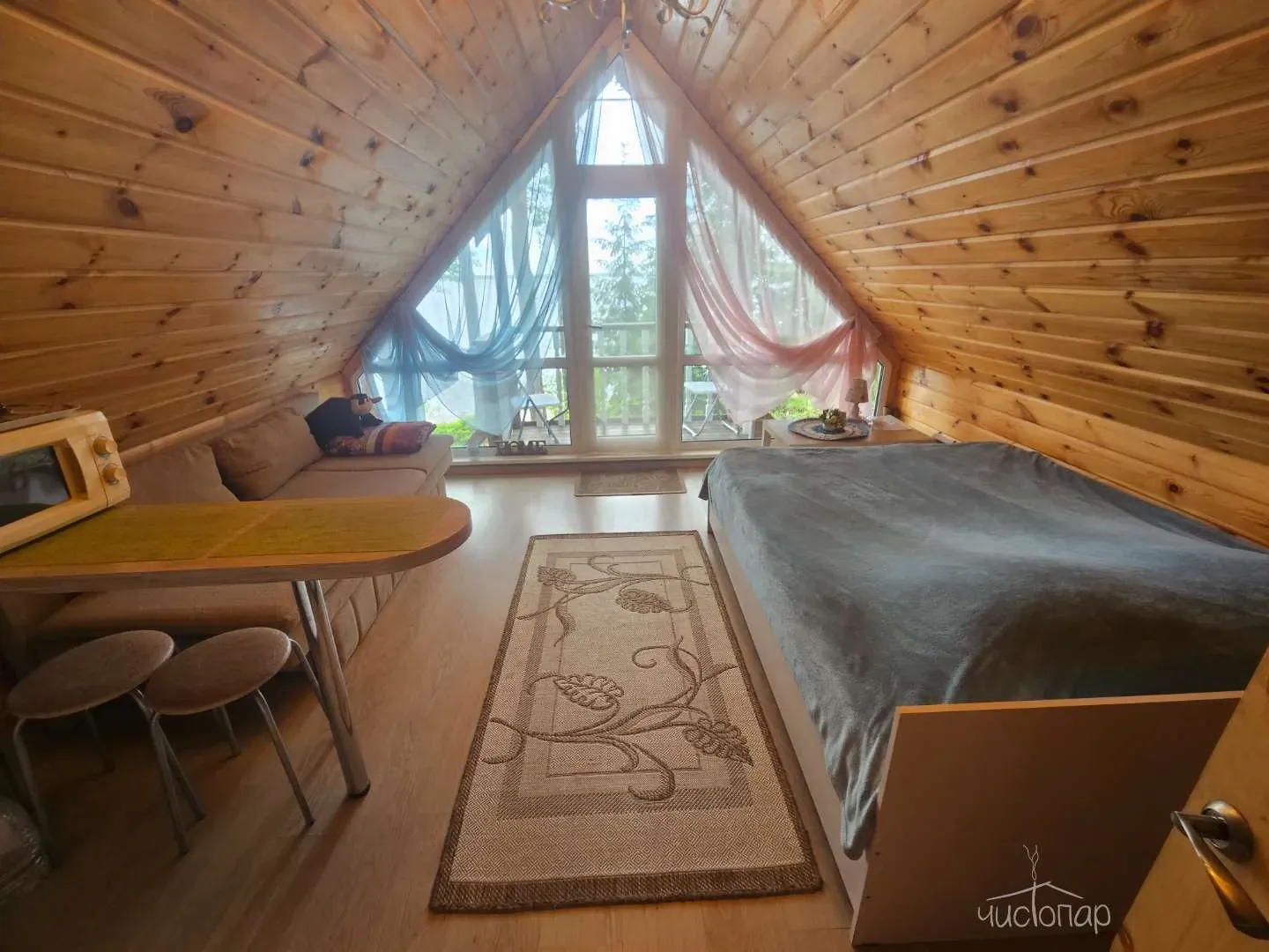 2-й этаж - спальня с панорамным окном, мини-кухня, с/у.