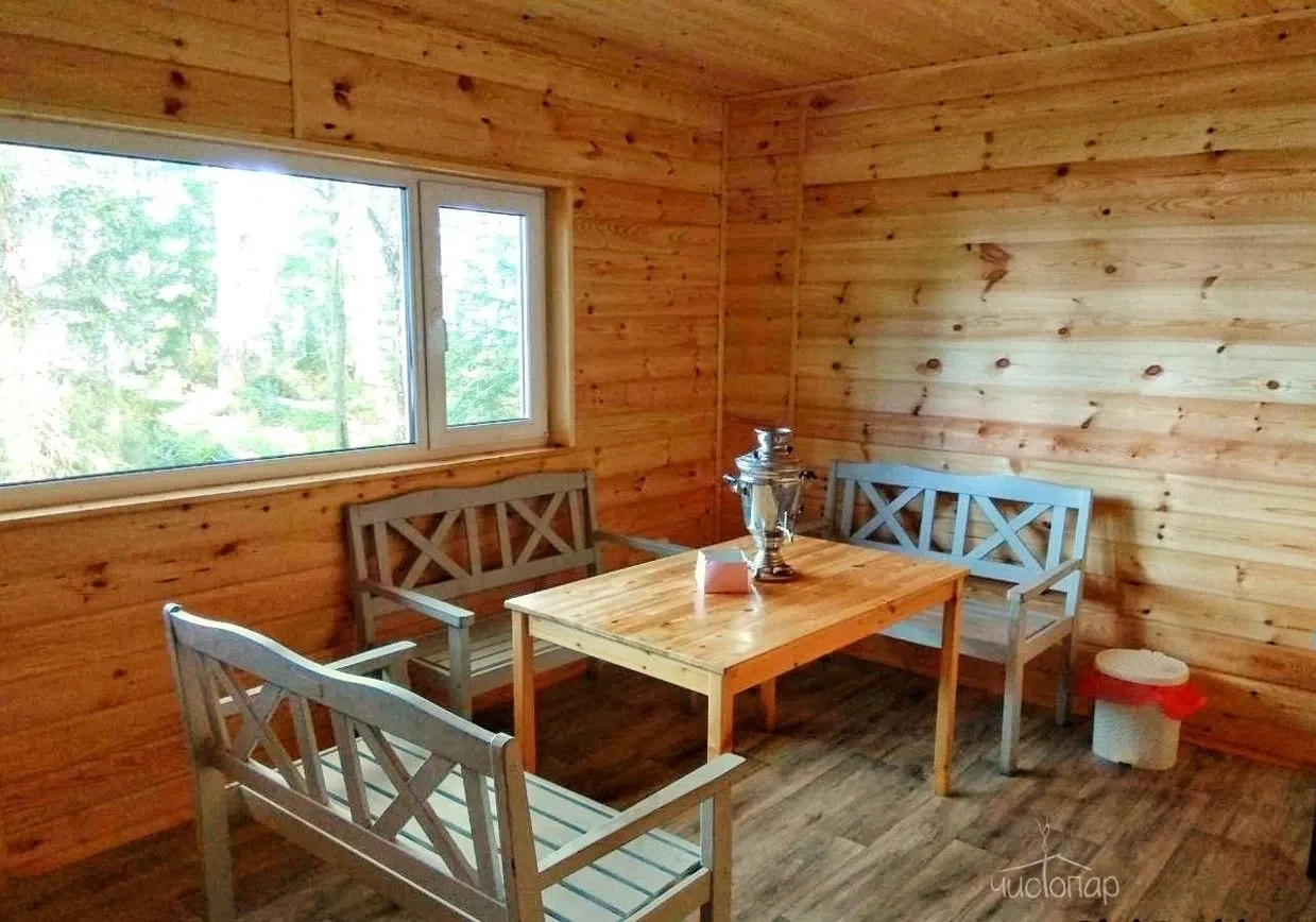 Небольшая база отдыха, расположенная в сосновом лесу на берегу озера Глубокое.