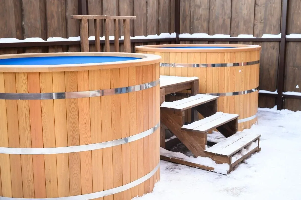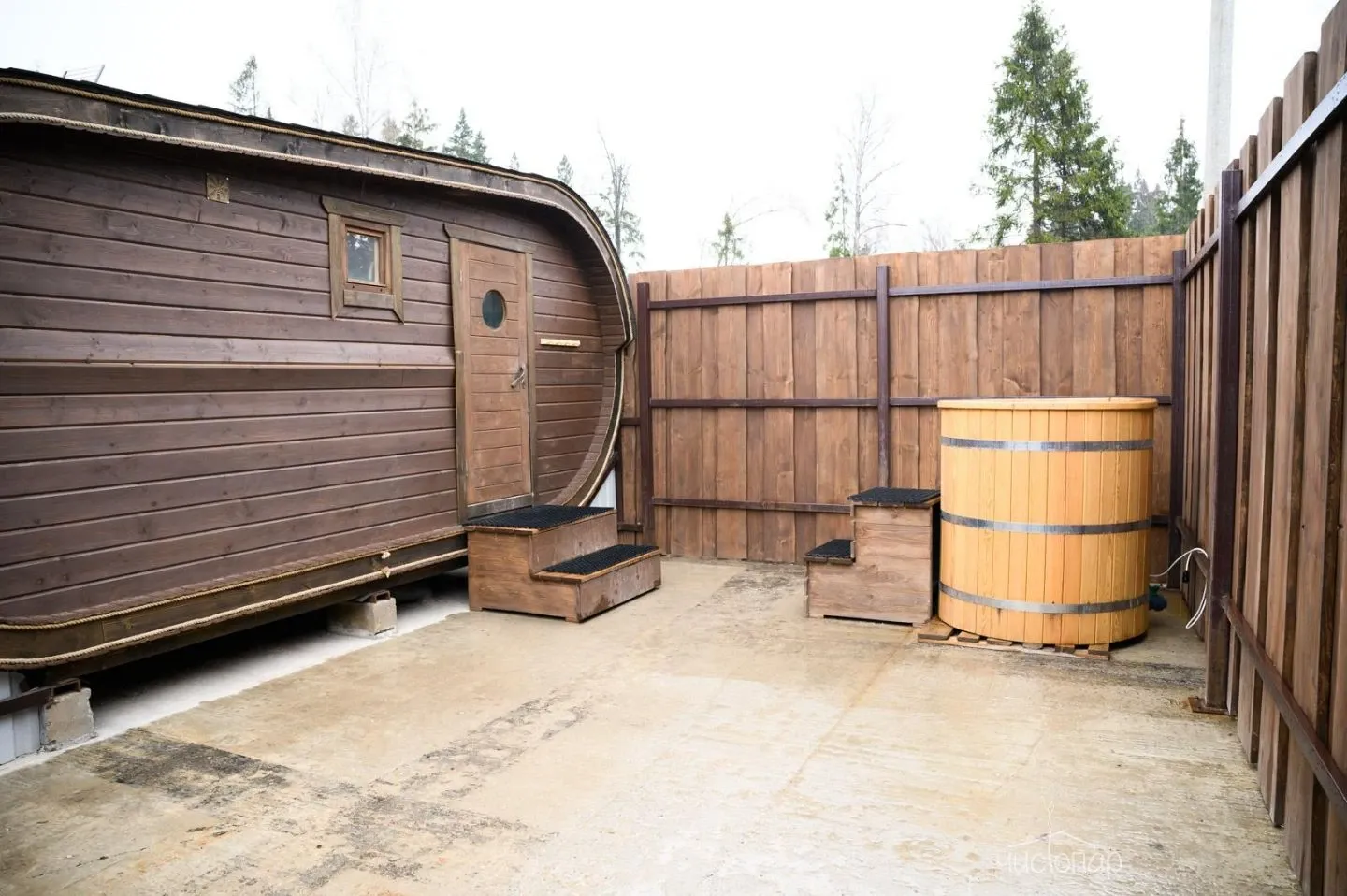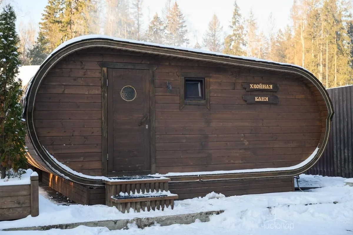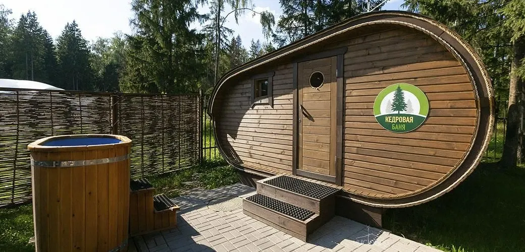 Финская саунаФинская сауна – это сухой вид парной, эффективное парение в которой происходит за счет чередования посещения парной и окунаний в купель с холодной водой. Поэтому на территории сауны расположена большая купель.