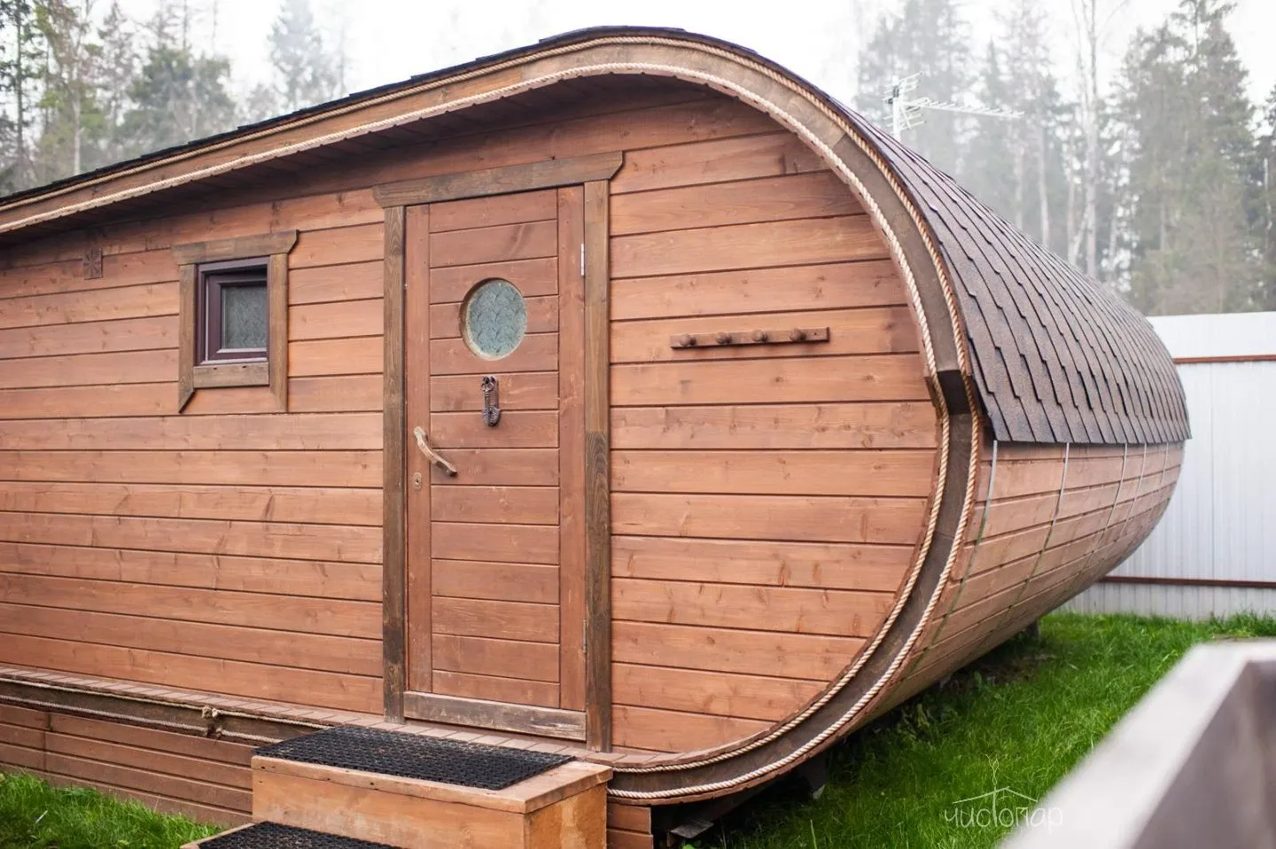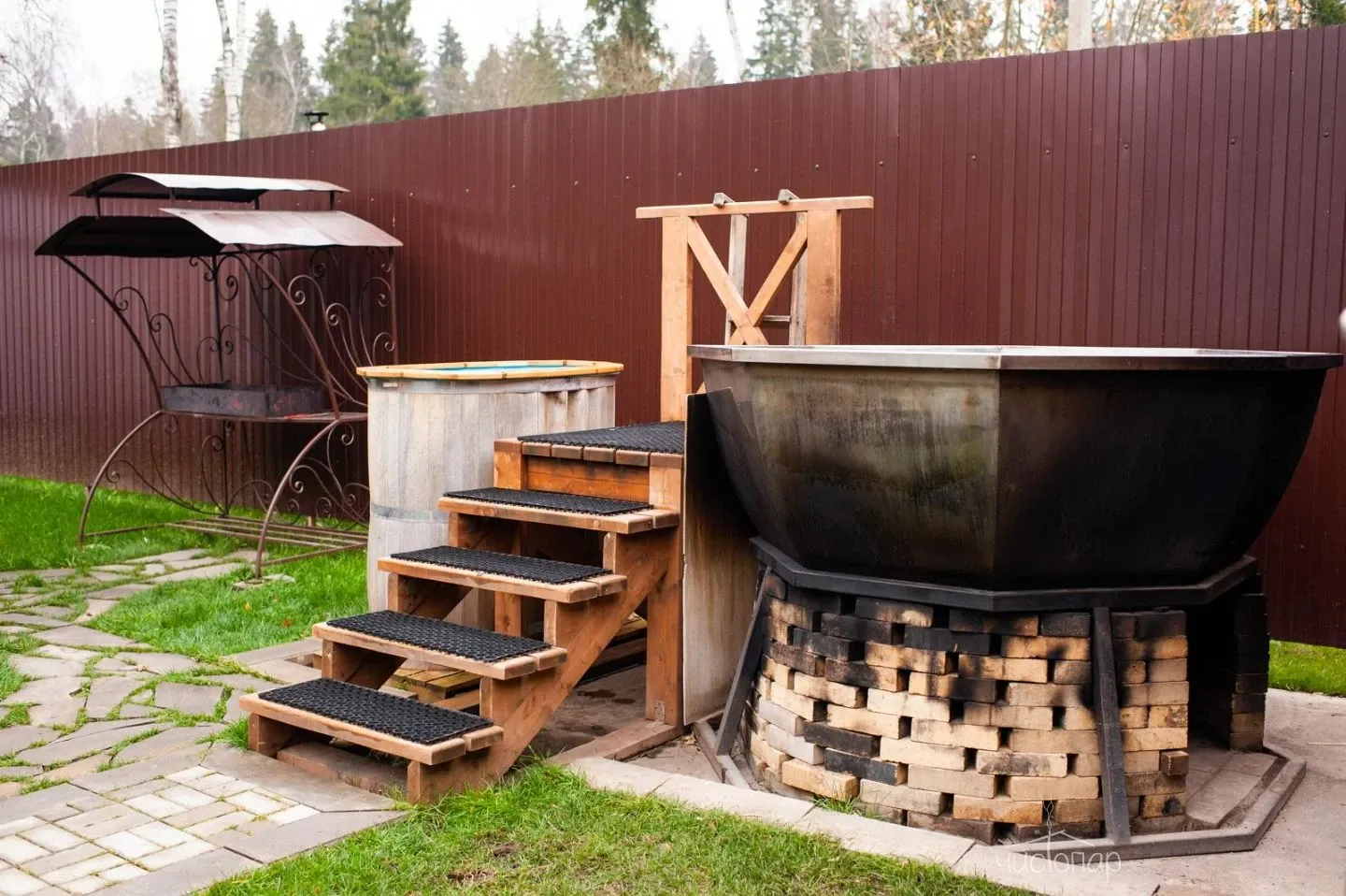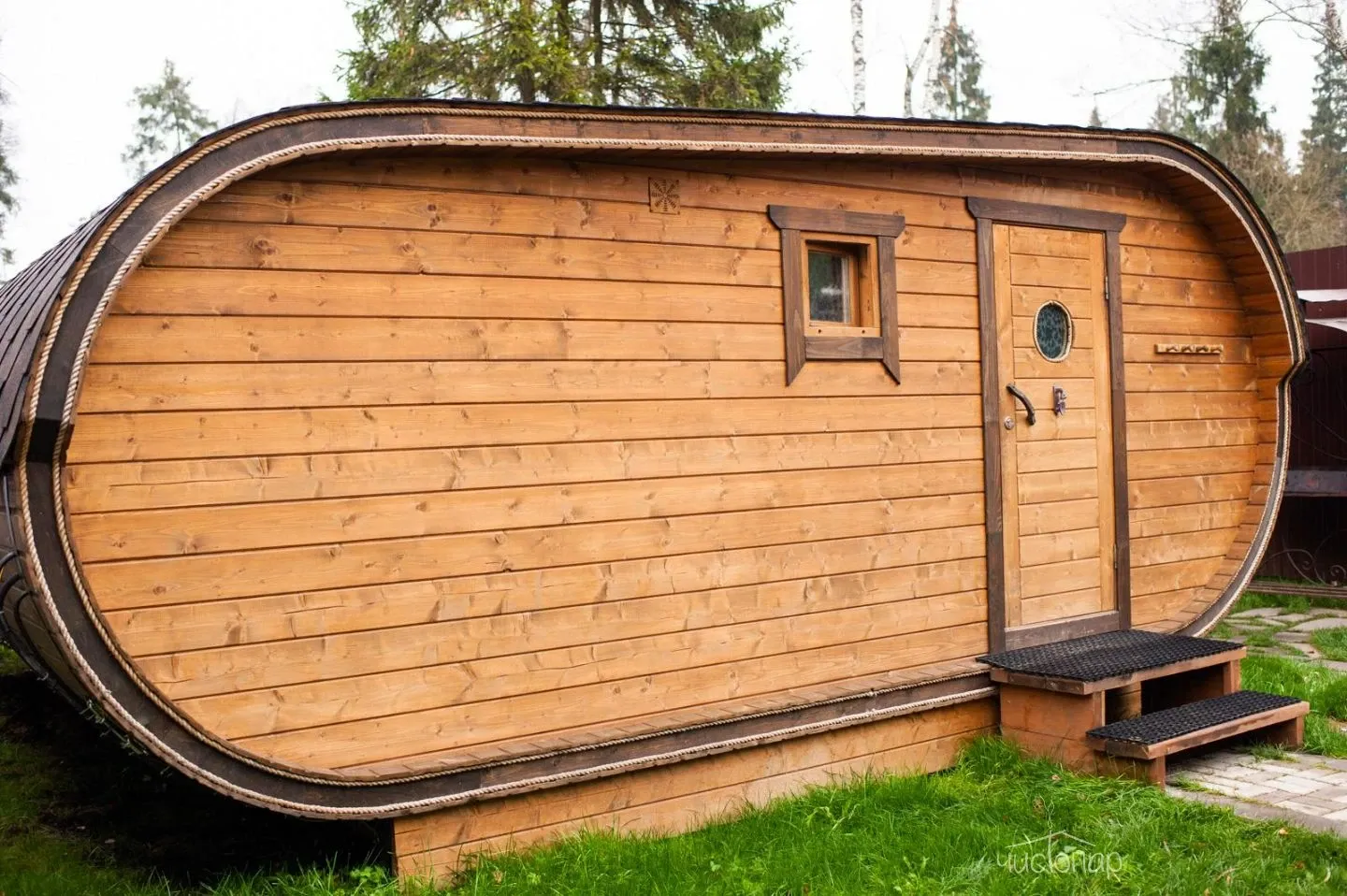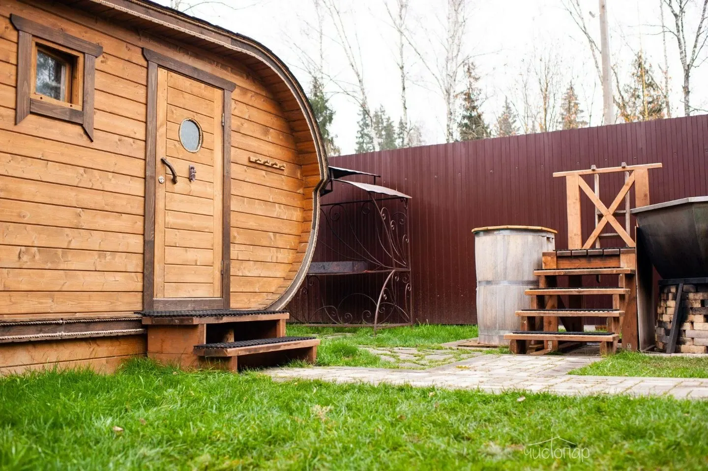 Финская саунаФинская сауна – это сухой вид парной, эффективное парение в которой происходит за счет чередования посещения парной и окунаний в купель с холодной водой. Поэтому на территории сауны расположена большая купель.