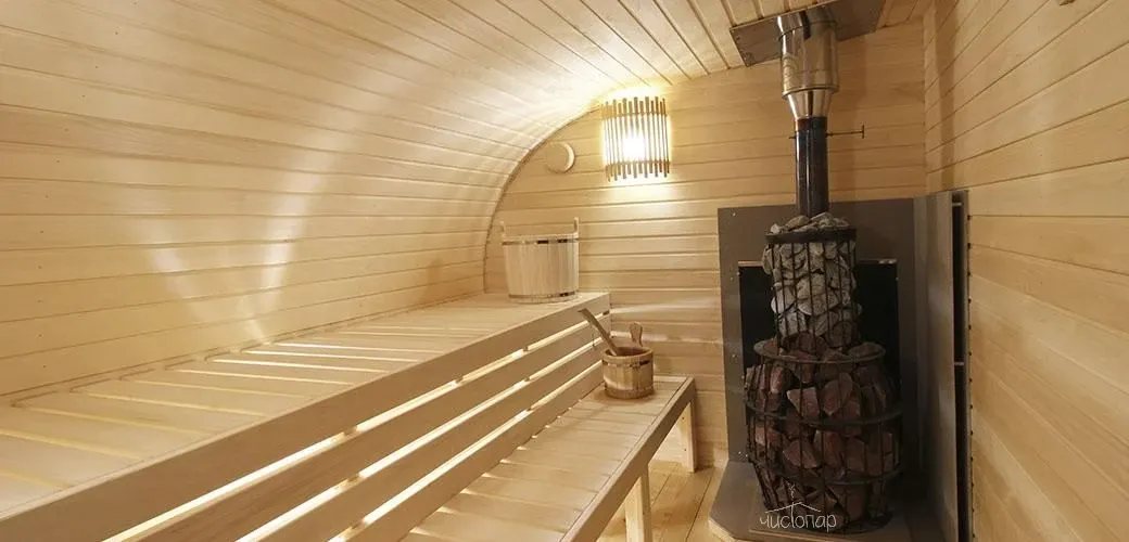 Русская саунаРусская сауна отличается более высокой влажностью, создаваемой за счет пара от установленного парогенератора. Влажный и горячий воздух действует по принципу ингаляции, облегчая дыхание.