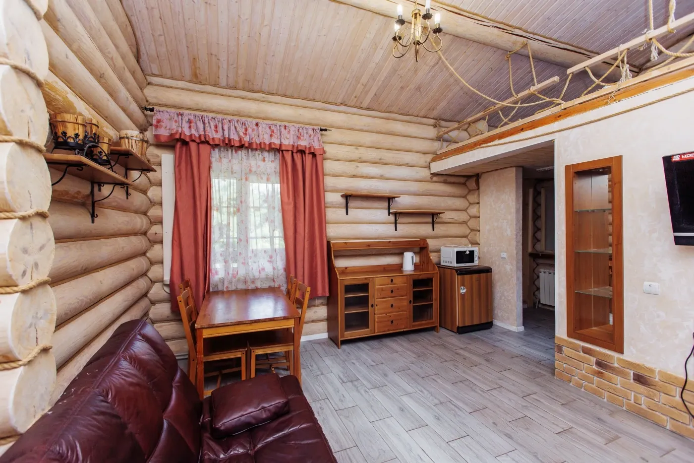 Двухэтажный рубленый дом со всеми удобствами, площадью 130 кв.м., который прекрасно подойдет гостям, любящим тишину и покой, а также гостям с детьми. Дом состоит из двух гостиничных номеров, в одном из которых есть баня.