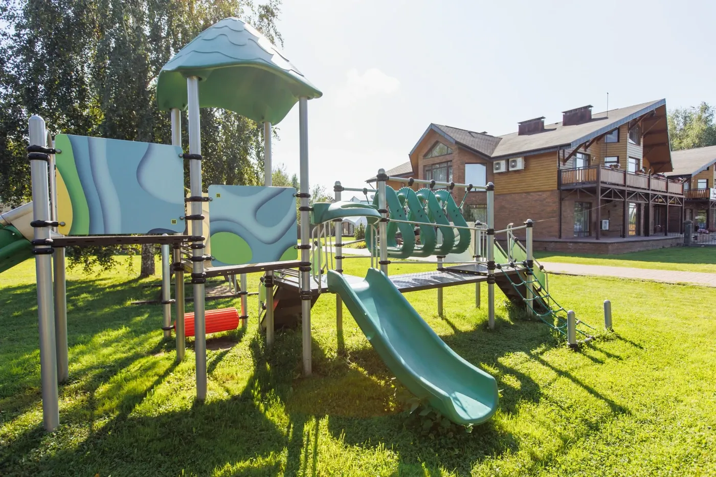 В ГРК "Премьер-Отель" созданы все условия для комфортного отдыха с самыми маленькими гостями: в ресторане есть детские стульчики, в гостиничный номер можно поставить детскую кроватку, а на зеленой лужайке в распоряжении малышей будет игровая площадка!