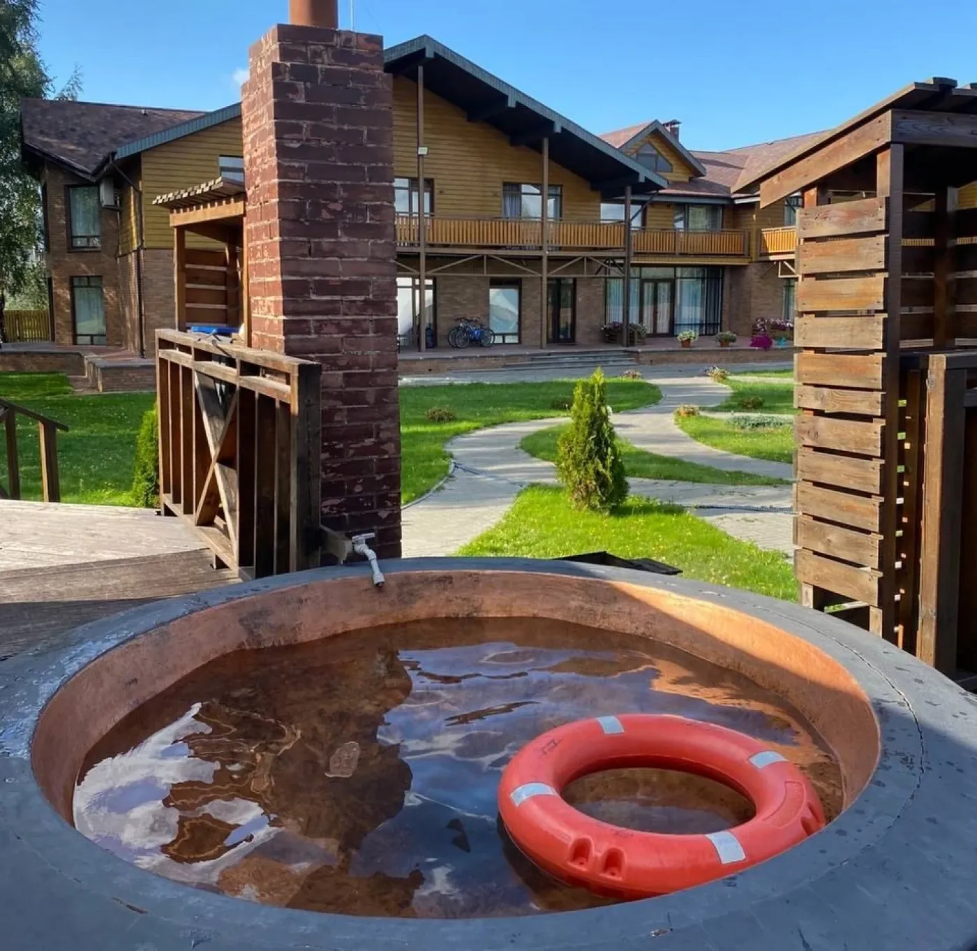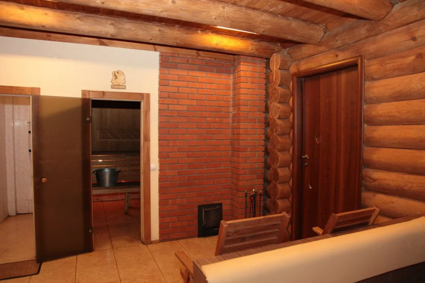- Банный комплекс, включающий в себя малую баню (вместимость 6 чел.), большую баню (вместимостью 12 чел.), бассейн и "молодильный" чан