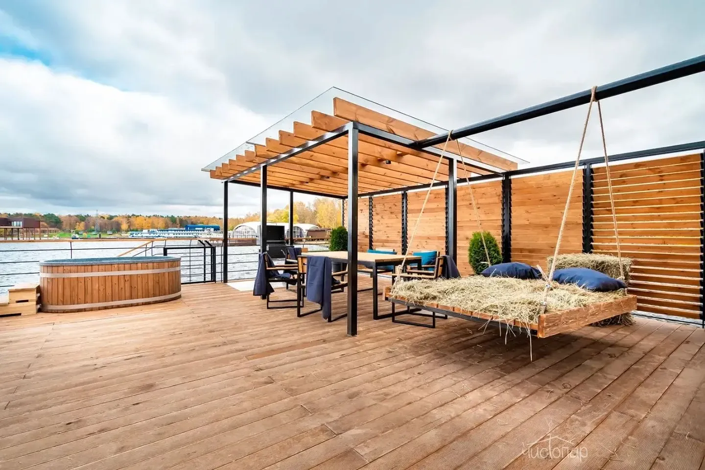 Дизайнерские двухэтажные коттеджи премиум-класса на воде с собственной баней, просторной террасой с горячей и ледяной купелями, а также зоной барбекю. В наших коттеджах есть все для отличного отдыха.