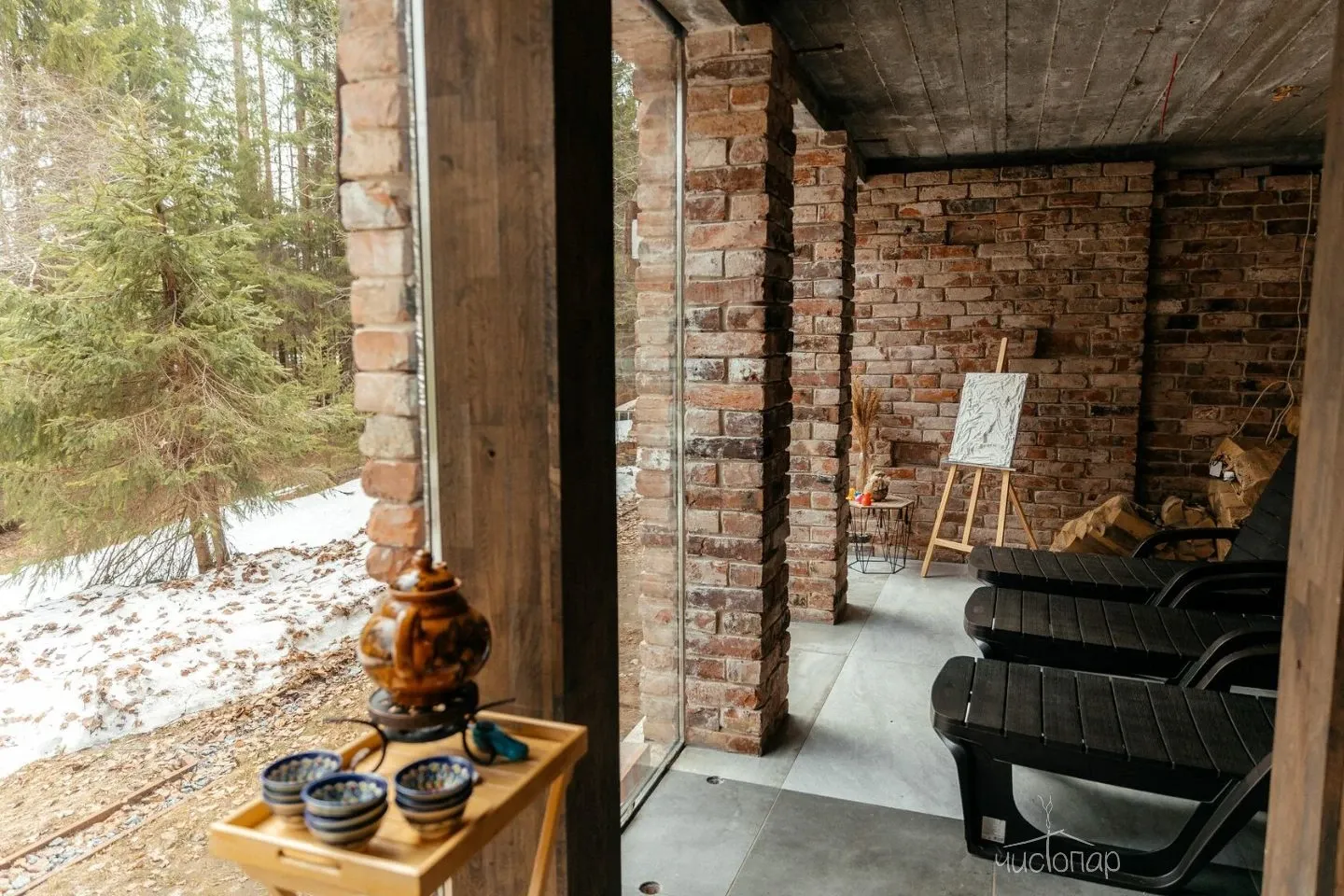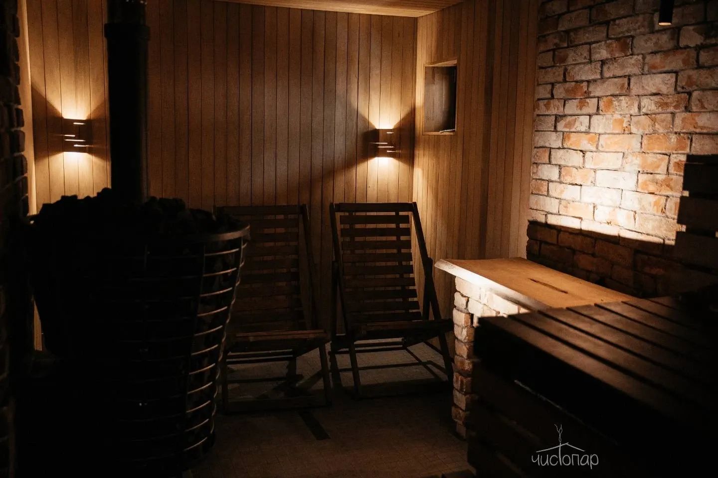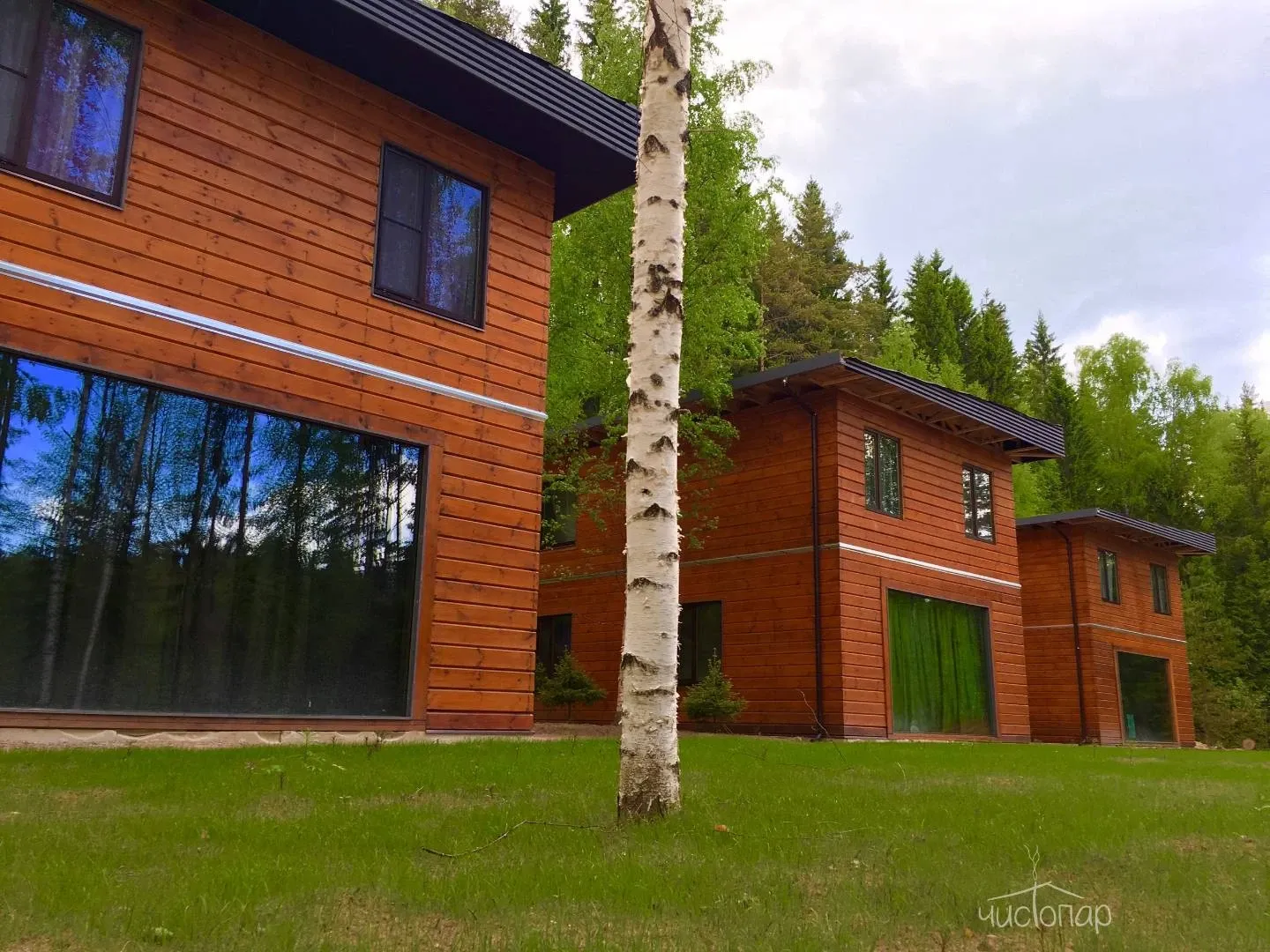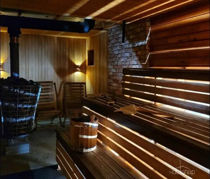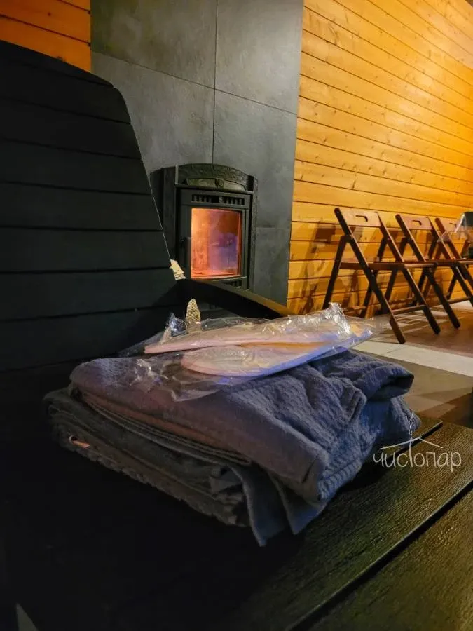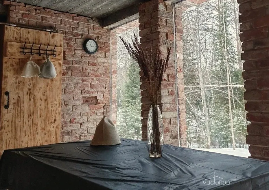 На территории есть вместительная баня из кедра - отдельное здание в нескольких метрах от коттеджей в стиле лофт. Предоставляется гостям за дополнительную плату, по предварительному бронированию.