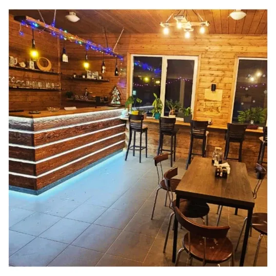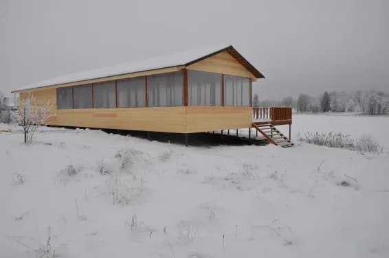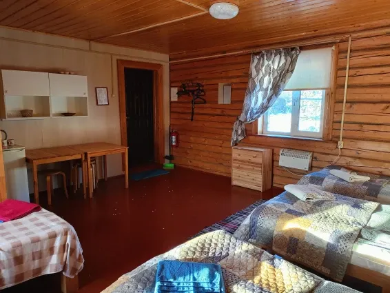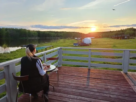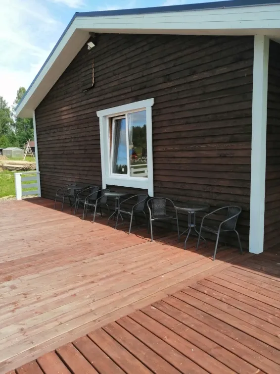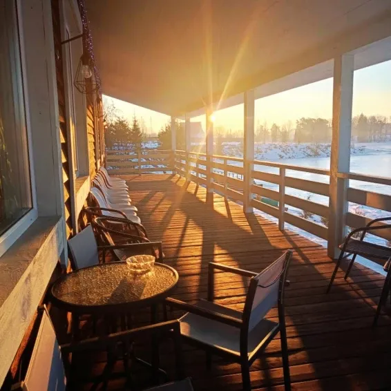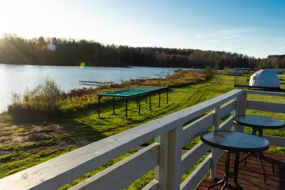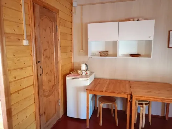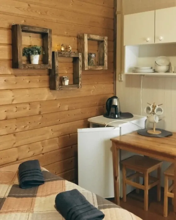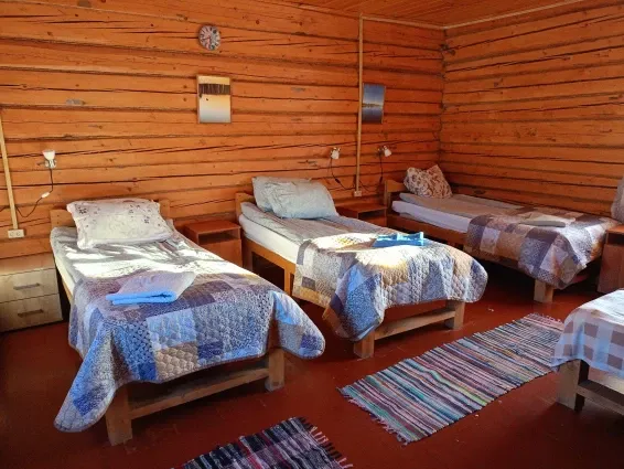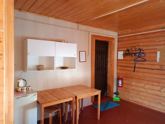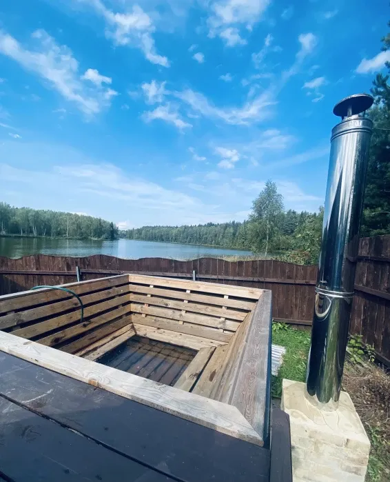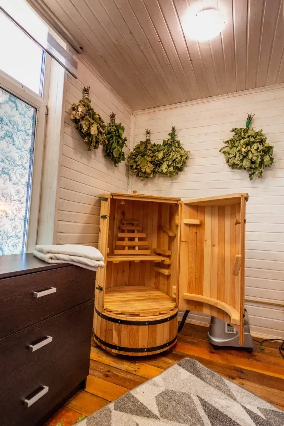 Турбаза располагает русской дровяной баней на берегу озера со спуском к воде. Рядом имеется банный чан. Предлагаются услуги парения от профессионального банщика.