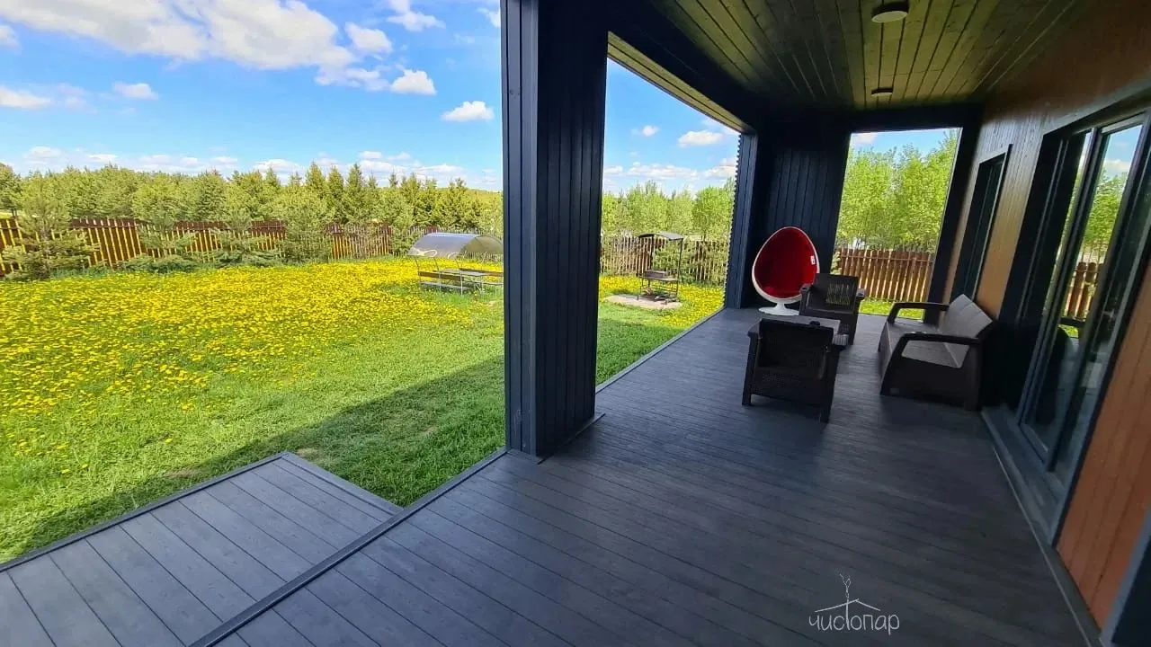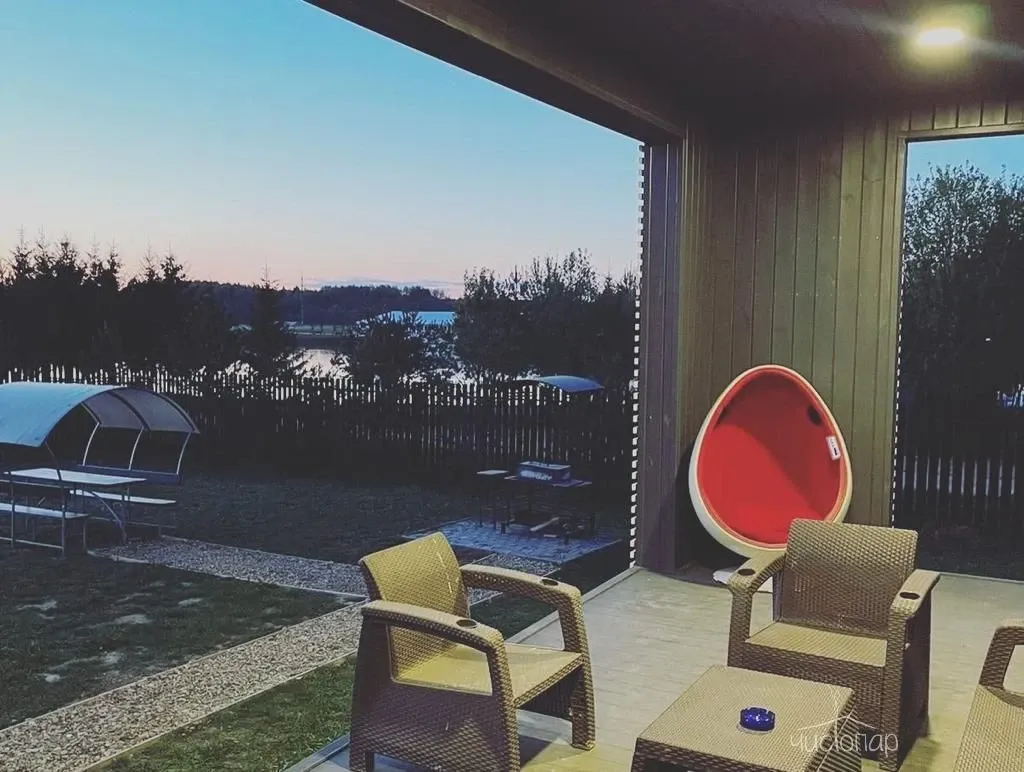 Дома расположены в парке отдыха с видом на озеро, до ресторана 100м, до озера с пляжем 30м, рыбалка 20м, квадроциклы, пейнтбол, боулинг. Отличная атмосфера, красивая природа и доступность ко всем видам развлечений.