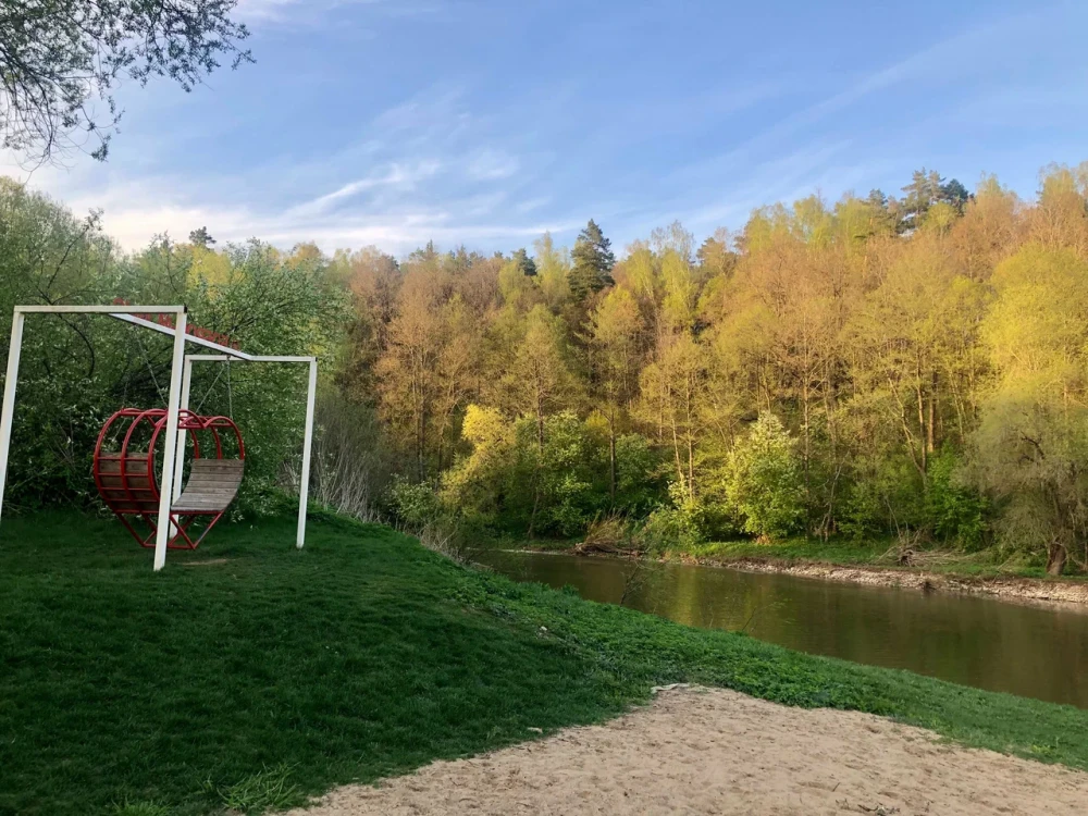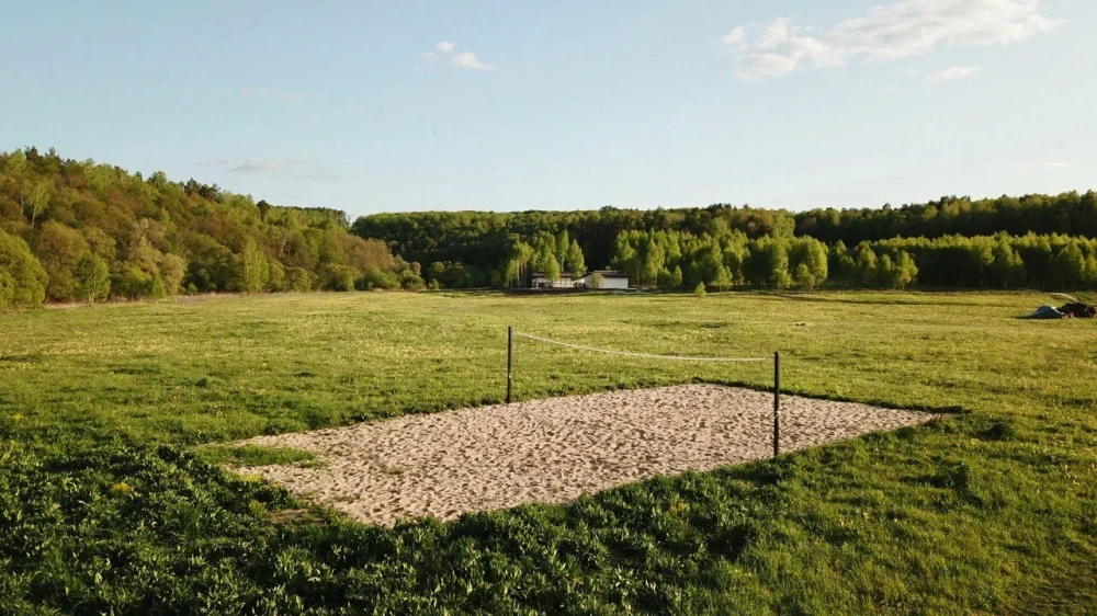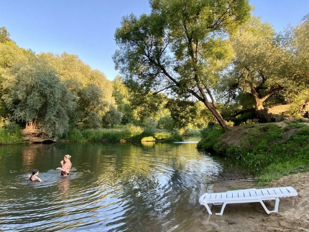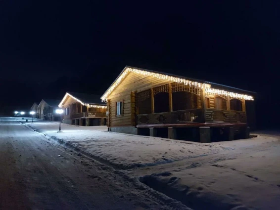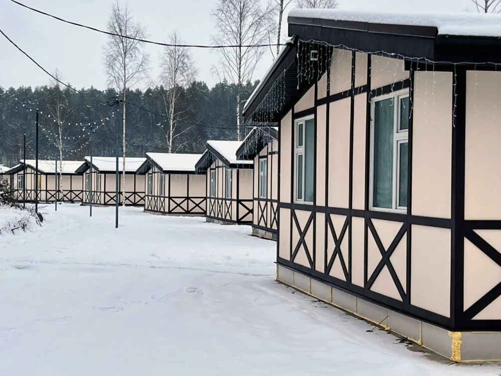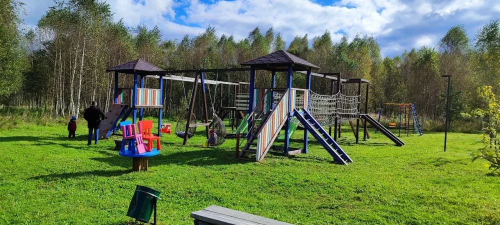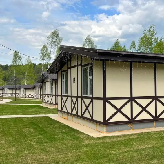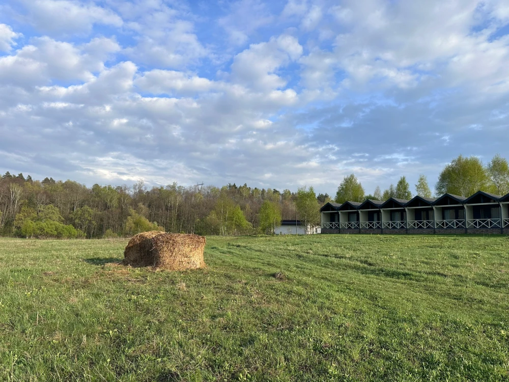 Экопарк "Бобровый мыс" расположен в живописном месте на берегу реки, в окружении леса. Гостям предлагается проживание в уютных домиках с верандами и мангальными зонами, а также доступ к пляжу с шезлонгами и качелями.