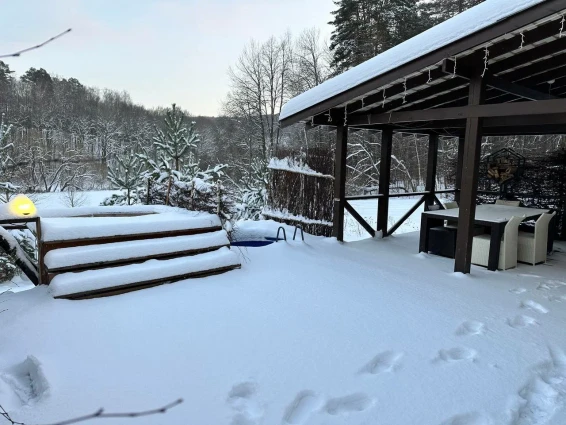 На улице расположена зона с мангалом для приготовления вкусных блюд на природе.