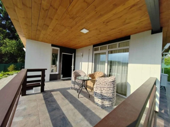 Уютный гостиничный номер с видом на сад. Гостиница блочного типа с общими удобствами на 2 гостиничных номера. Кухня полностью оснащена всем необходимым для готовки: холодильник, чайник, свч, плита, столовые приборы и посуда. Так же возле гостиницы расположены мангальные зоны.