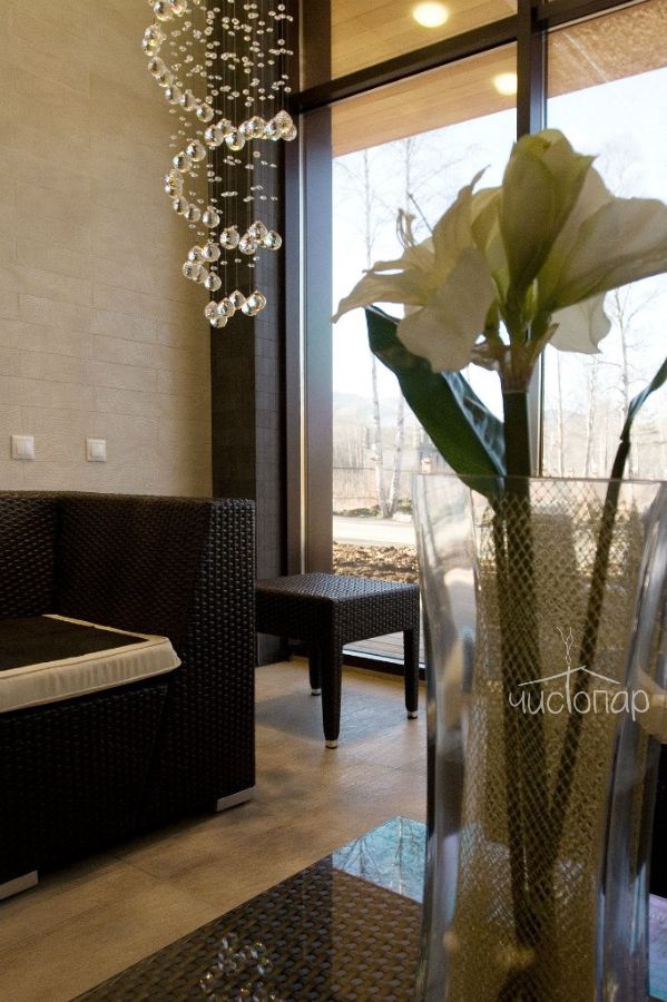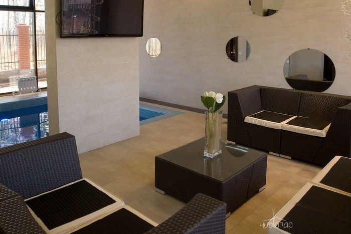 В отеле работает баня с бассейном, она рассчитана на компанию до 8 человек.