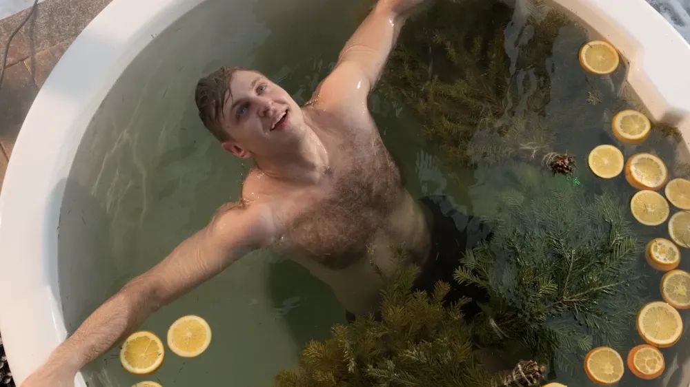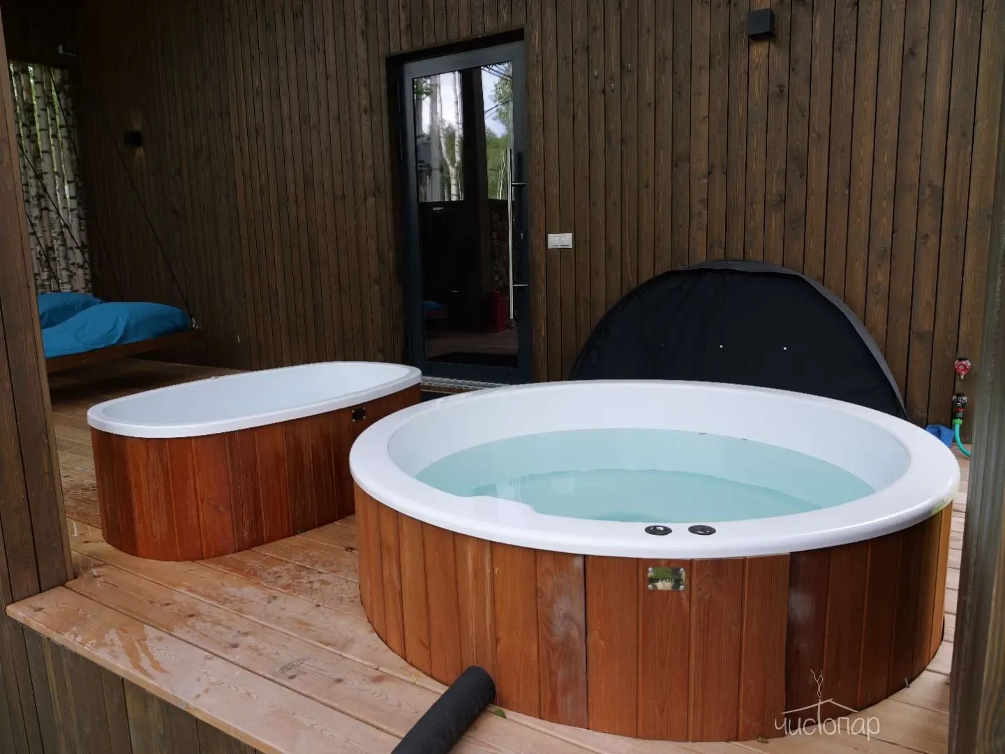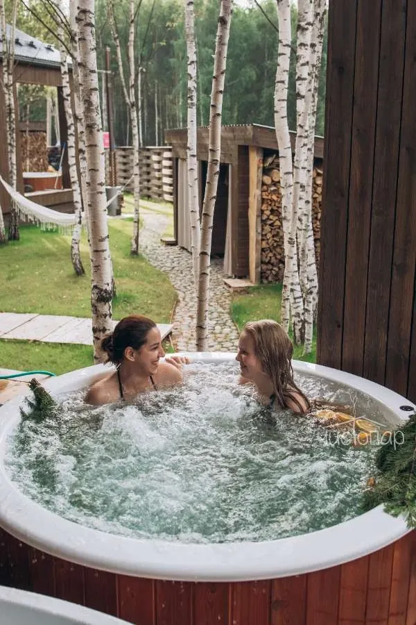 ✅Отдых в теплой купели фурако на открытом воздухе.