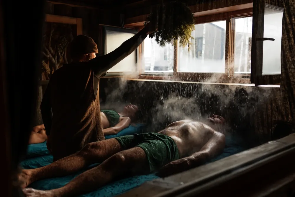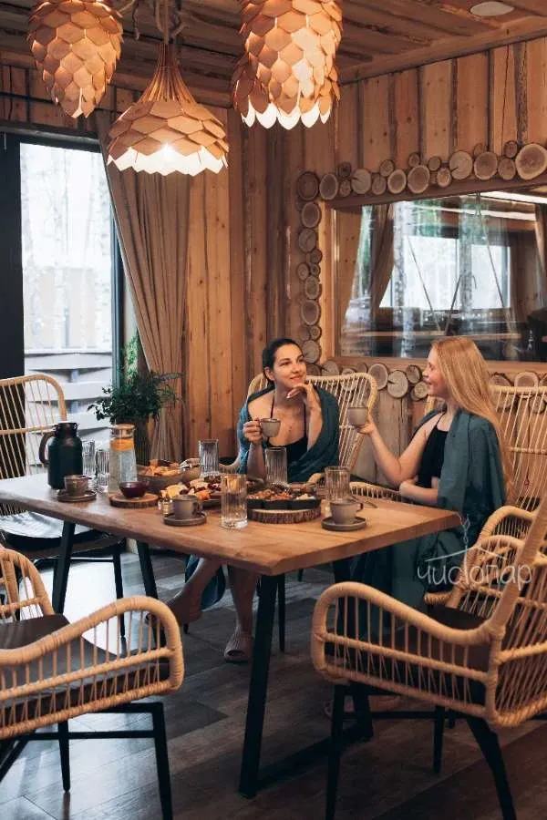 СПА-процедуры, банный пилинг, купель на открытом воздухе, чайные церемонии с мёдом и традиционными закусками.