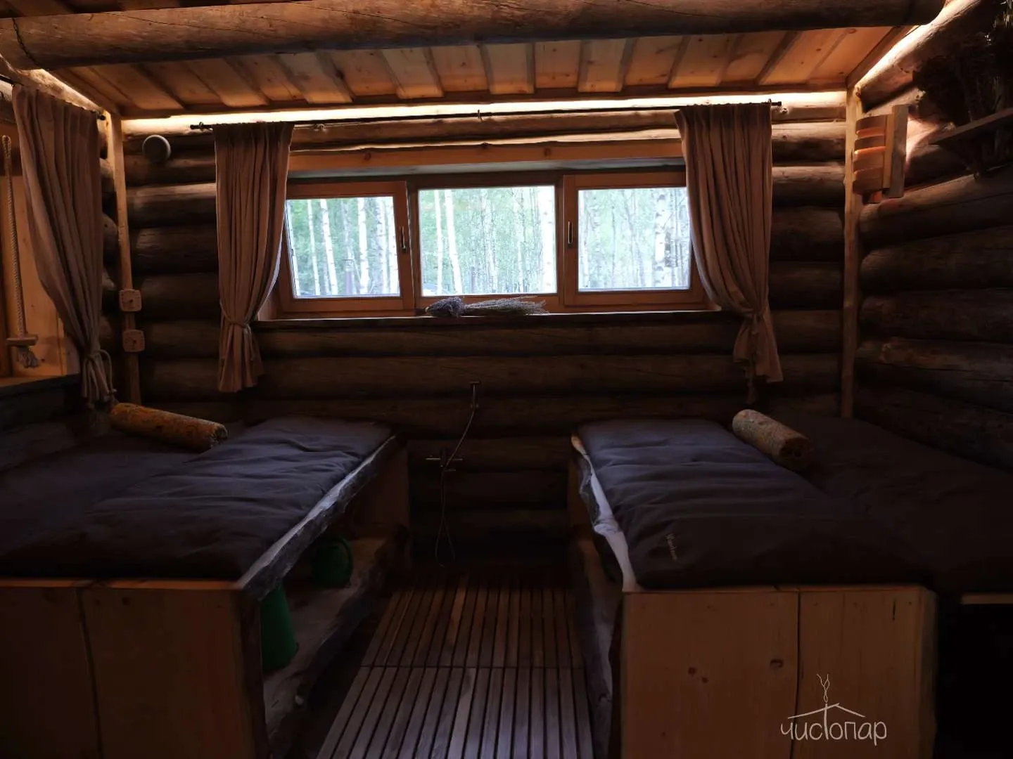 Классическое парение с дубовыми, берёзовыми и пихтовыми вениками, пенный массаж на сенном матрасе, ароматерапия, авторские банные ритуалы с пармейстером.