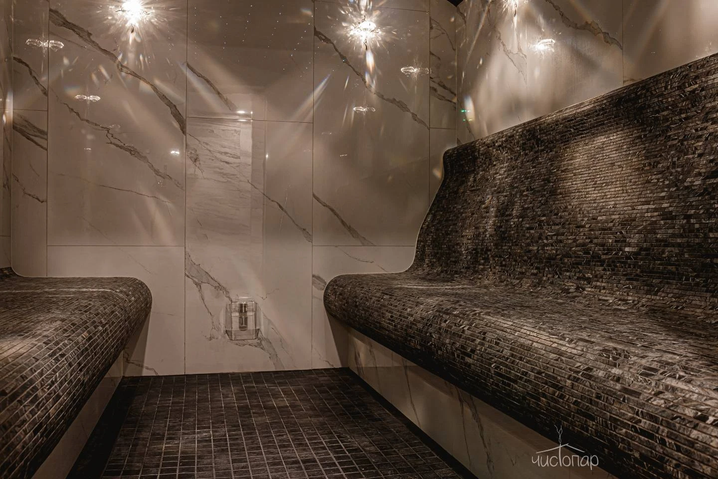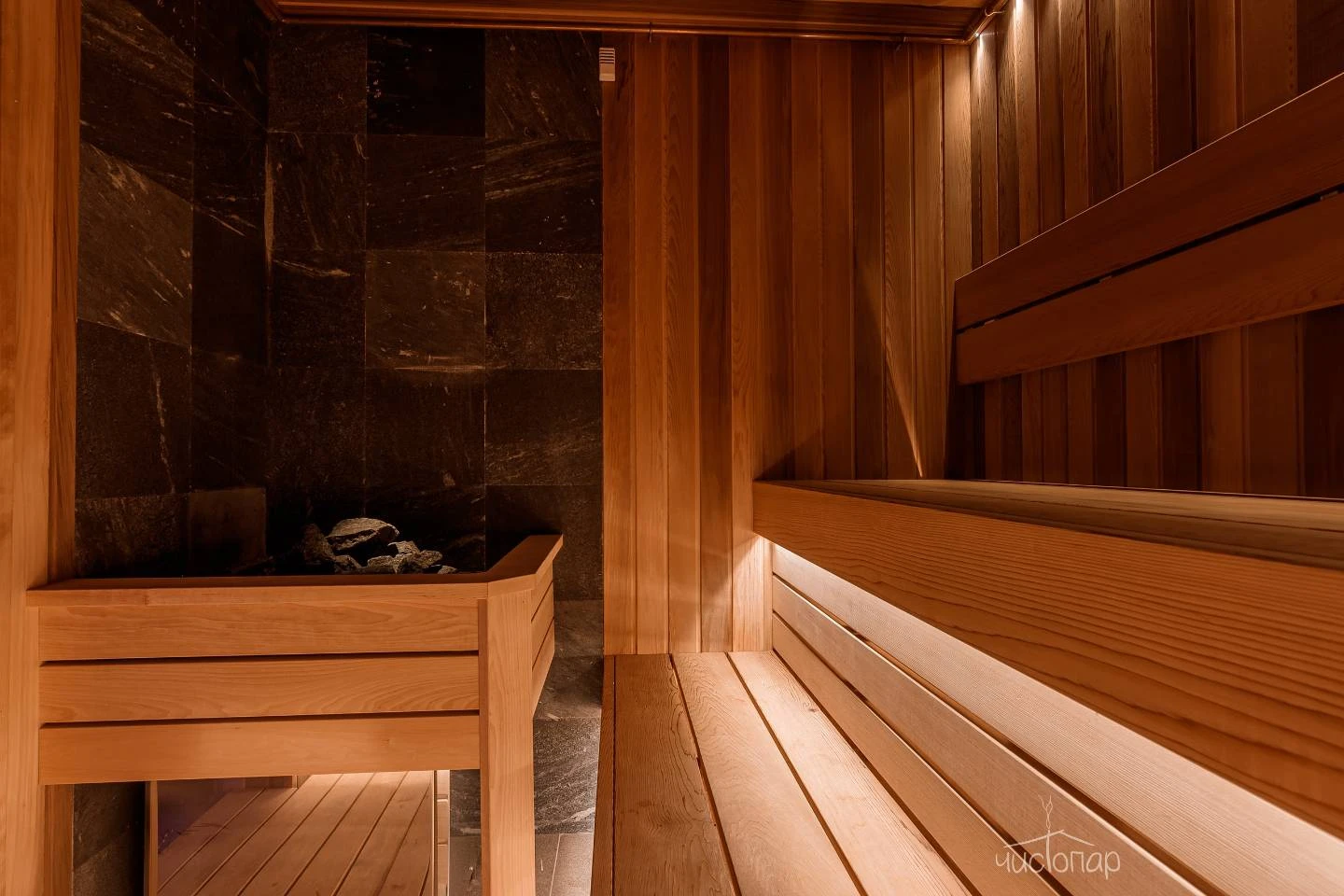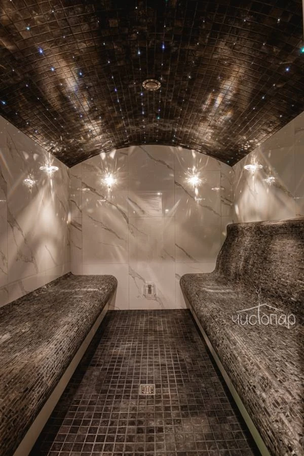 Первый пар мягкий и нежный постепенно становится густым и интенсивным. Тёплый туман обвалакивает кожу, учит чувствовать своё тело, прислушиваться к ощущениям и желаниям.