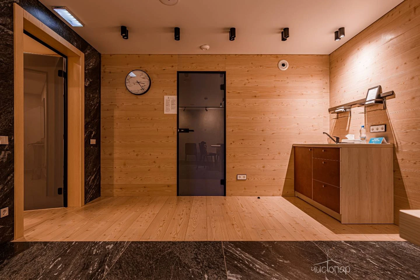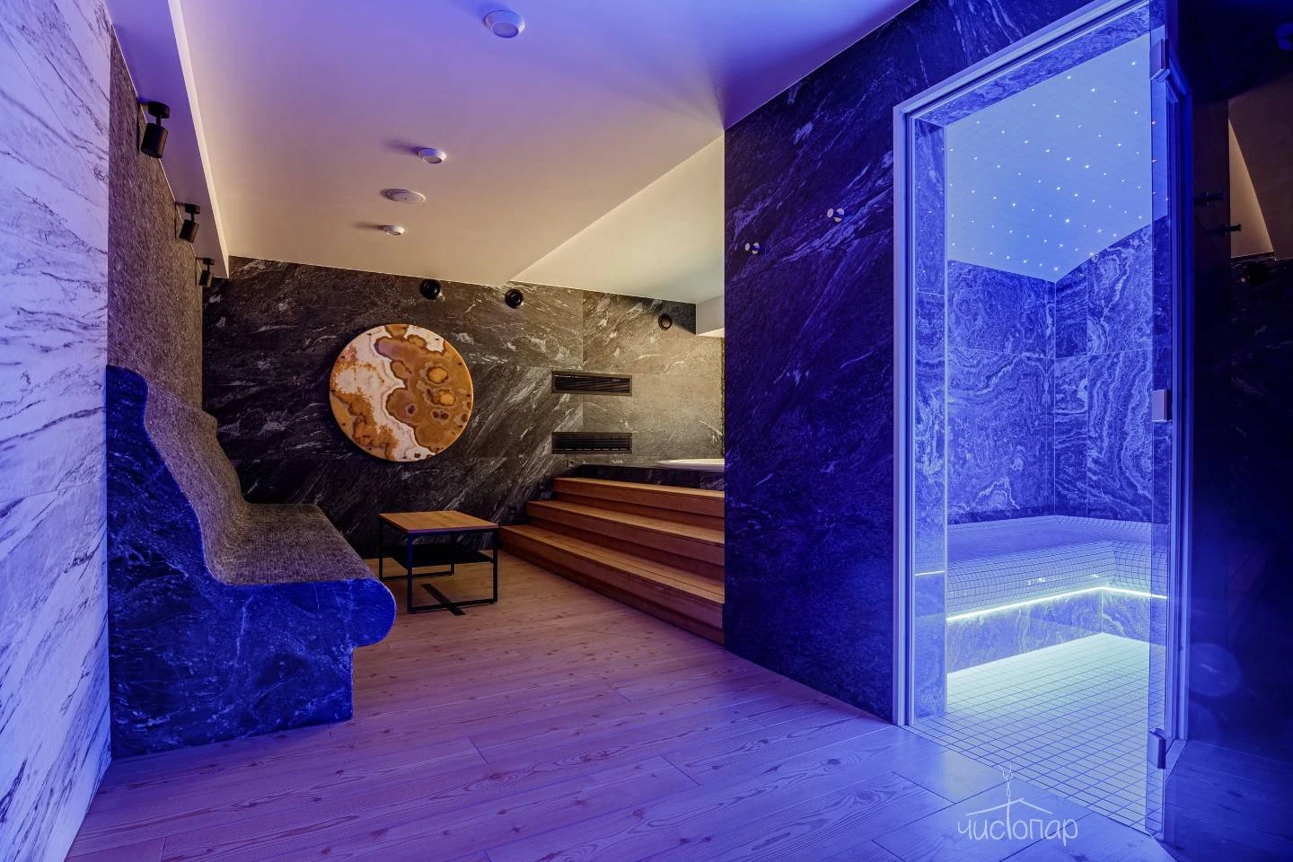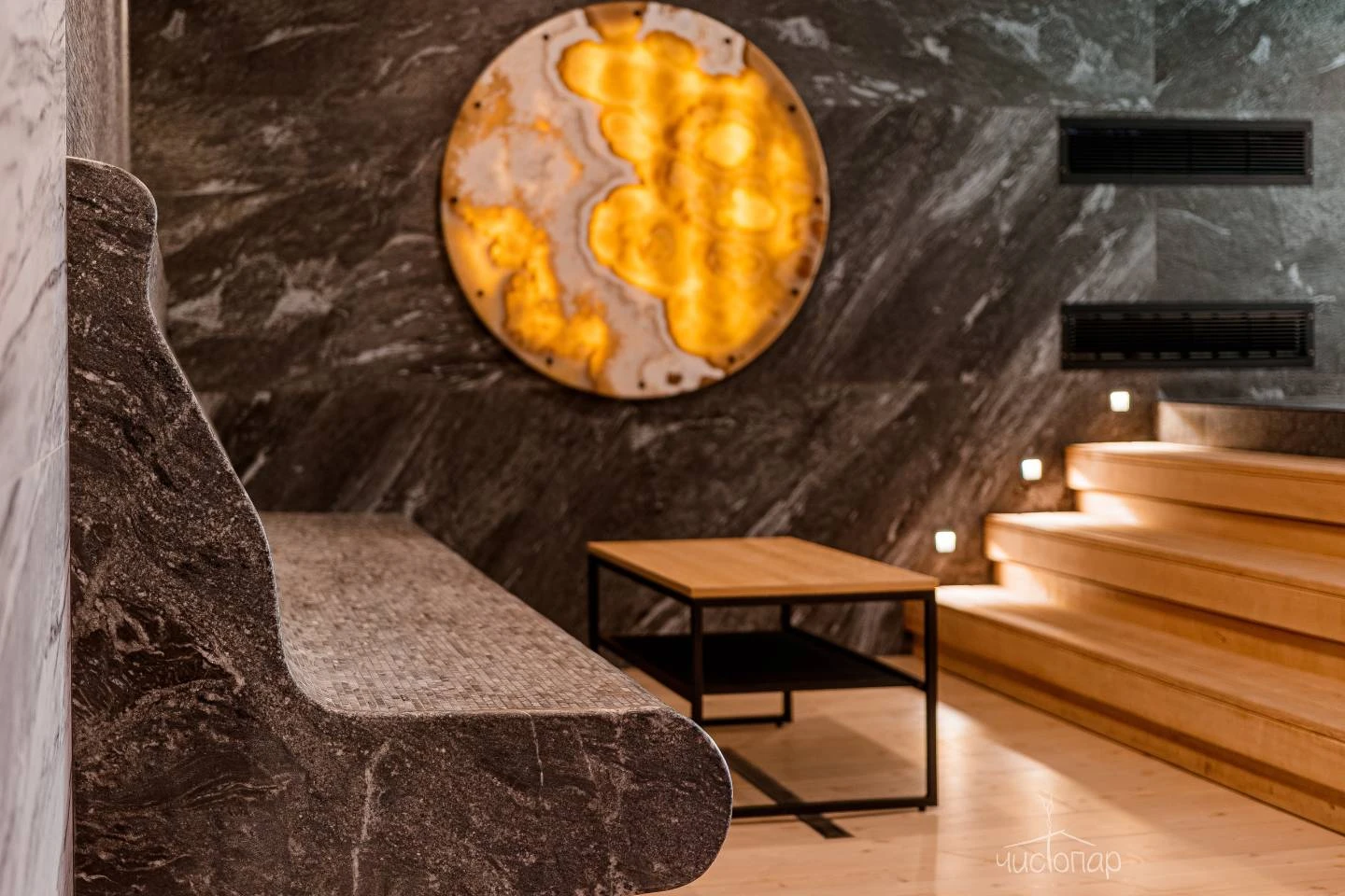 Первый пар мягкий и нежный постепенно становится густым и интенсивным. Тёплый туман обвалакивает кожу, учит чувствовать своё тело, прислушиваться к ощущениям и желаниям.