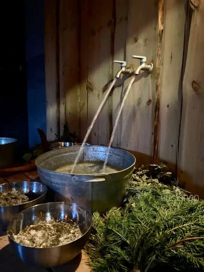 - веники березовые и дубовые, травы