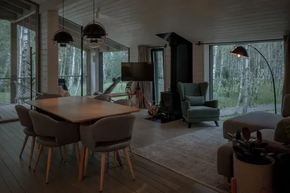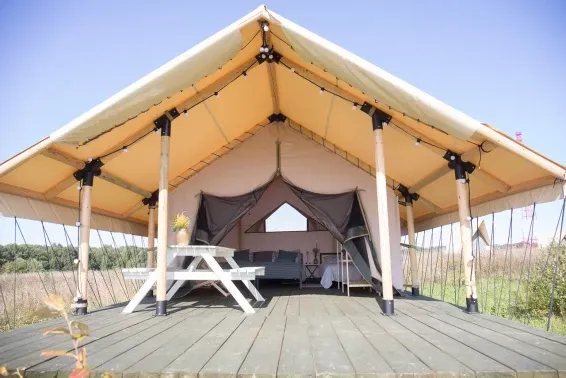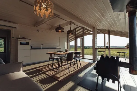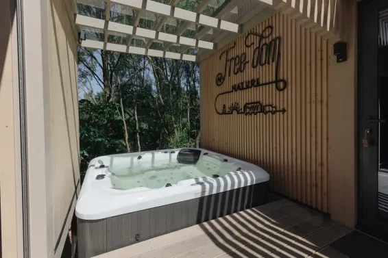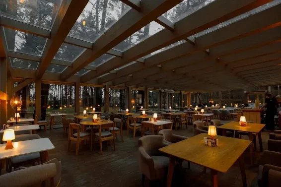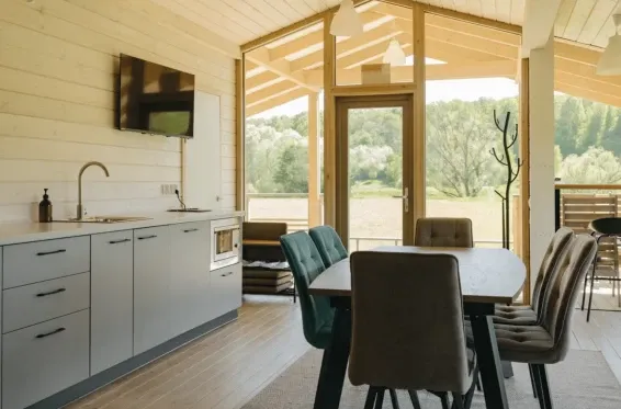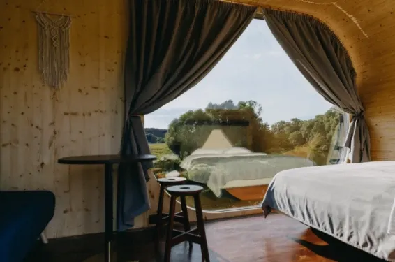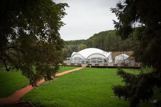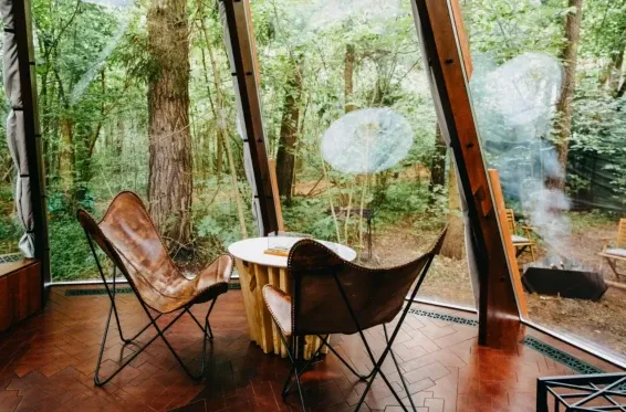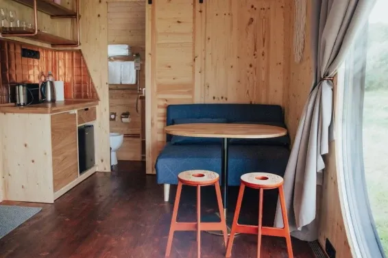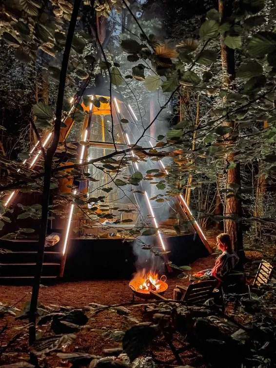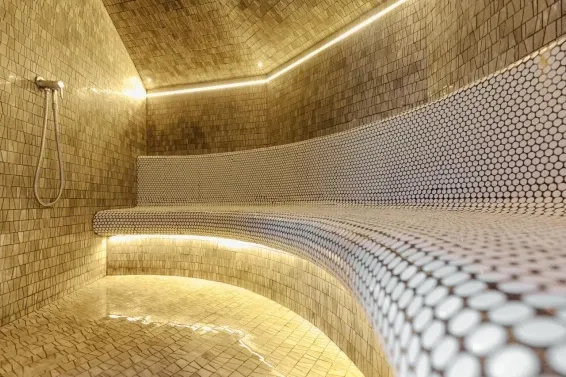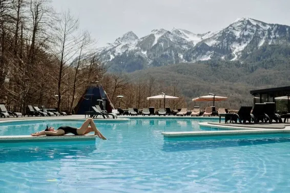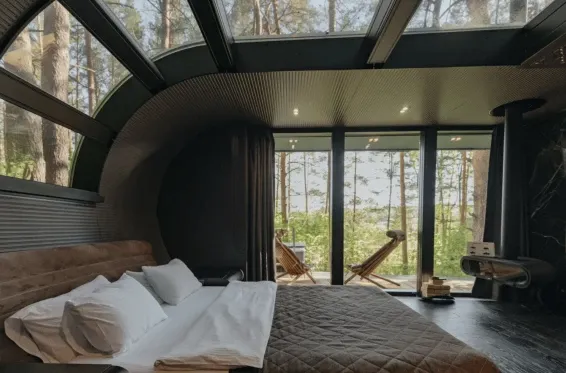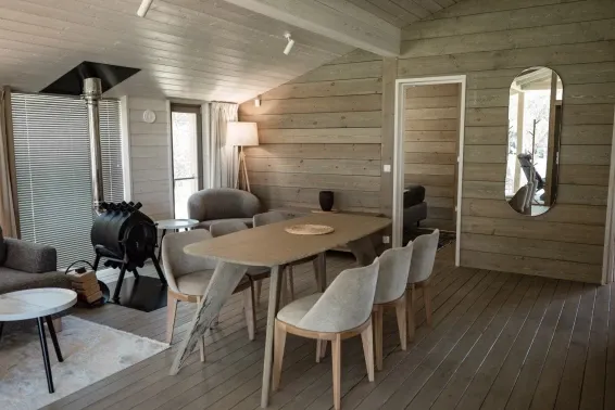 В СПА комплексе глэмпинга к услугам гостей - бассейн, джакузи, хамам, панорамная сауна, 2 комнаты отдыха с шезлонгами и чаем, массажный кабинет. Комплекс вмещает до 30 человек.