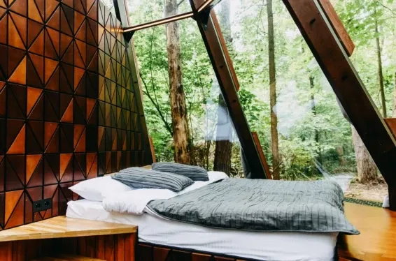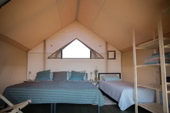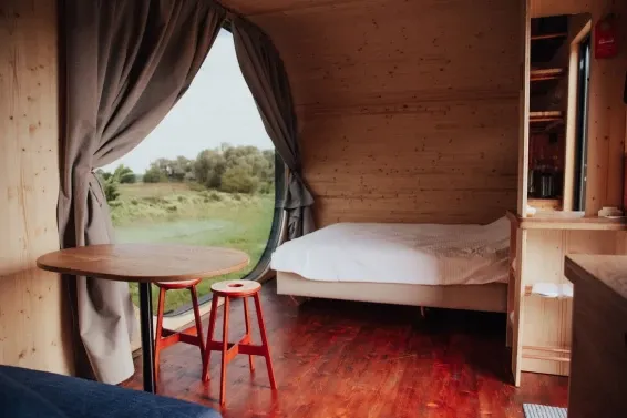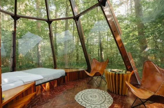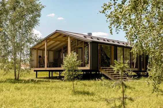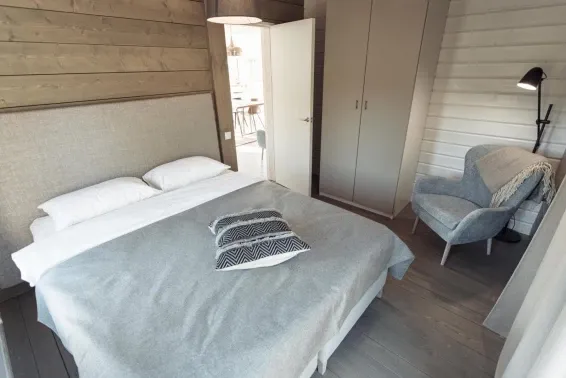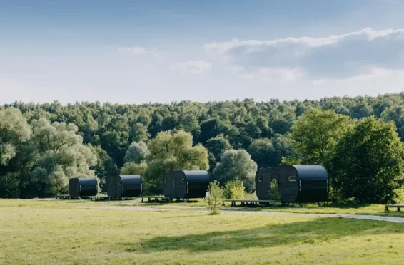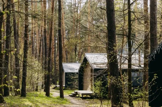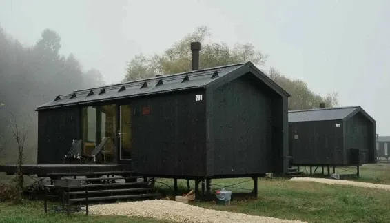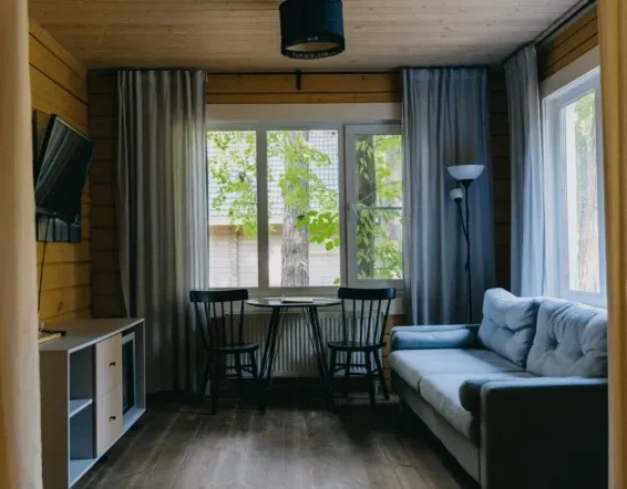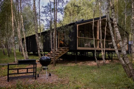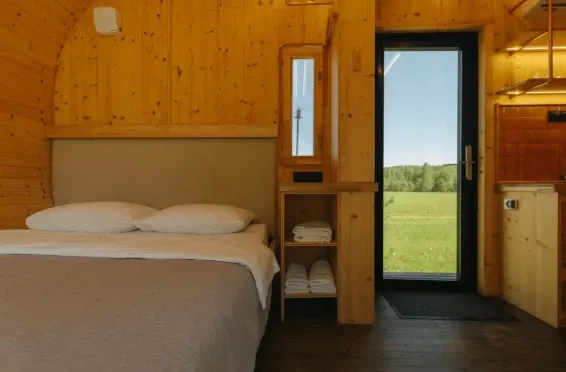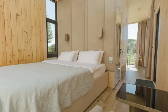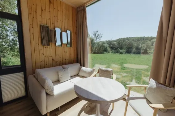 На территории парка можно разместиться в уютных модульных домиках разной архитектуры. В некоторых домиках имеется джакузи, в домике Куб есть своя сауна. Также можно проживать в сафари-тентах со всем необходимым. Комфортное размещение для 2х или 4х человек.